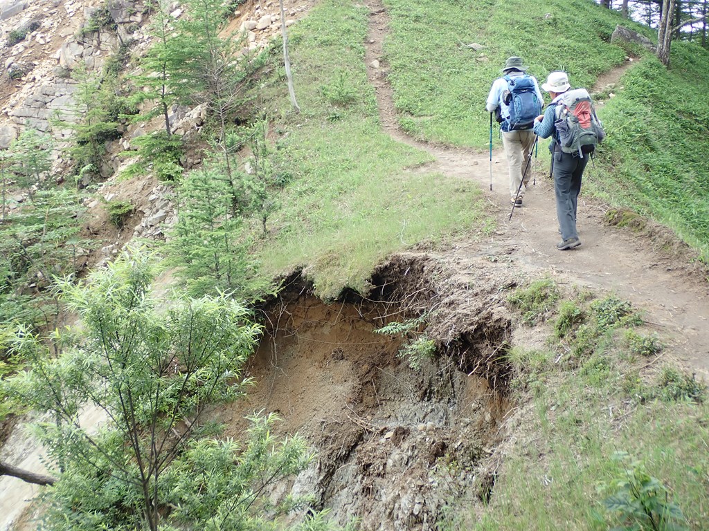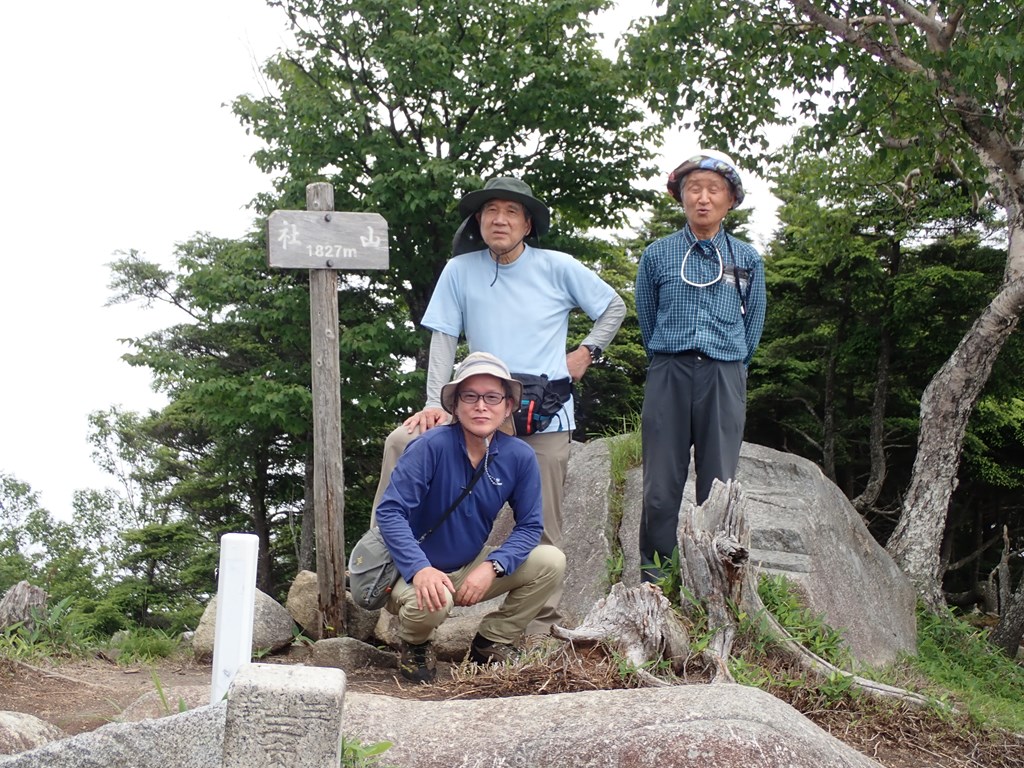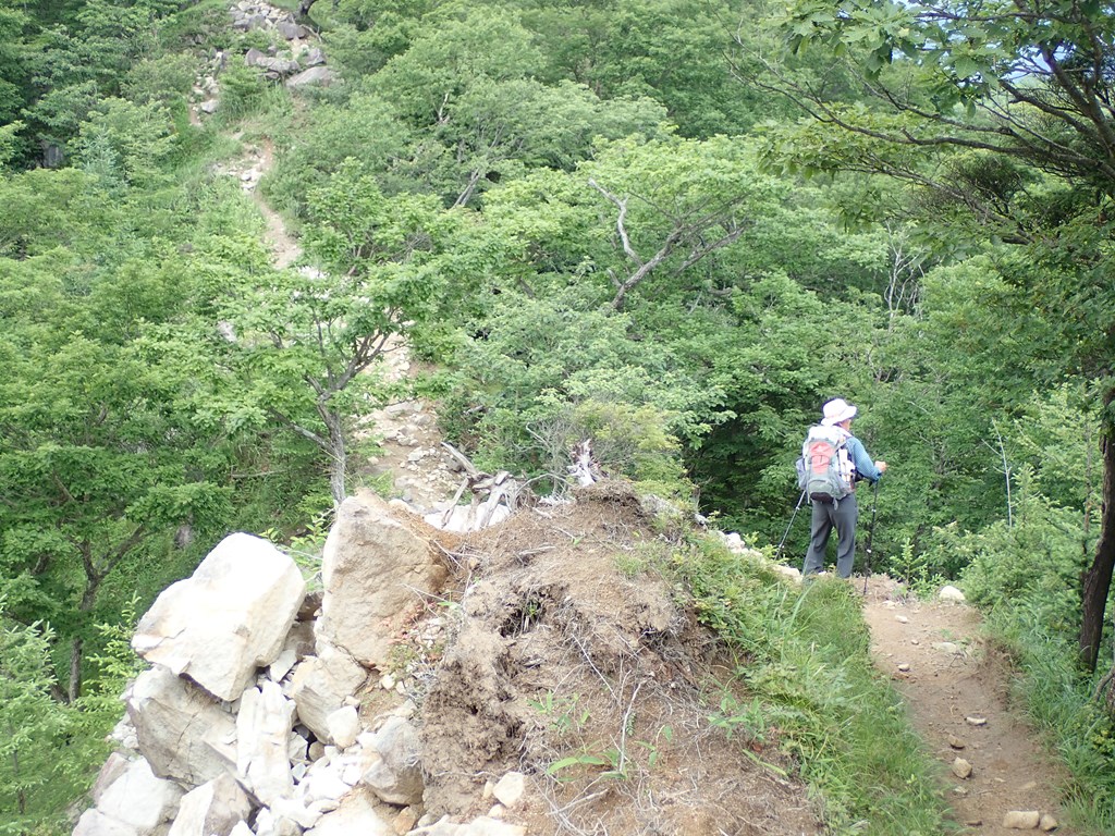 25分で峠に到着。そこからは楽しい尾根歩きだ。最初は男体山が見えていたが、途中からは全く見えなくなってしまった。社山は何度も登っているが、いつものように、偽ピークに騙された。またこの尾根でも崩落が進んでいる。火山性の地形なので致し方ないのだろうが、少し心配だ。せめて私が歩ける内(あと7-8年か)はもってほしい。