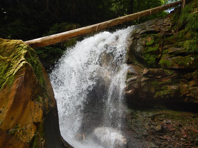 <行程>小山5:00-6:45道の駅たかはら7:15~8:15桜沢・スッカン出合8:38~8:40(スッカン沢入渓)~9:20雄飛(ユウヒ)ノ滝~9:40仁三郎(ニザブロウ)ノ滝~10:25桜沢・スッカン沢出合~10:30咆哮霹靂(ホウコウヘキレキ)ノ滝~12:10雷霆(ライテイ)ノ滝~14:05おしらじノ滝~14:48県道56号~15:10道の駅たかはら-小滝鉱泉(入浴)-8:30小山