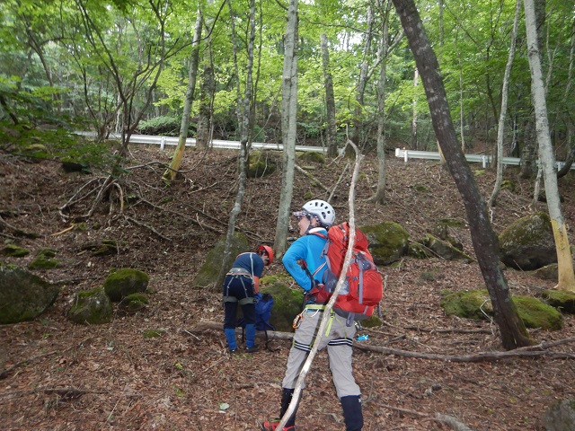 おしらじノ滝を高巻くと沢は終盤になります。車のエンジン音が聞こえるころには正面に白いガードレールが現れ、この県道で桜沢の遡行は終了。