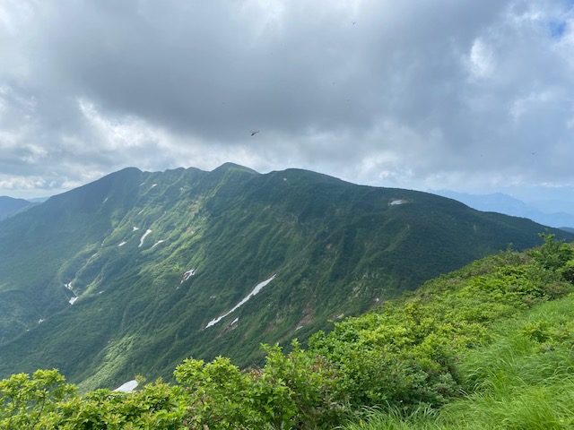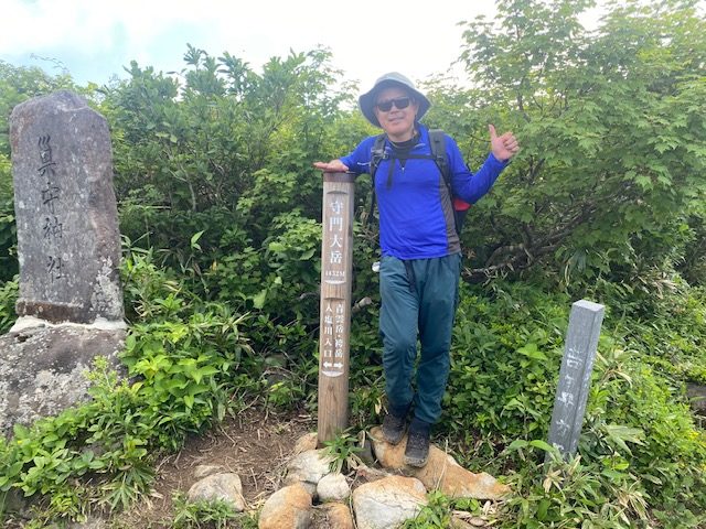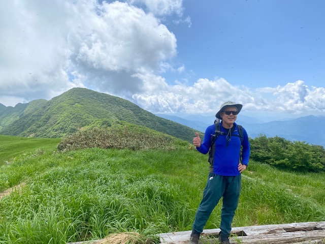 <詳細報告>7月10日3時30分出発。佐野インターから小出インターまで高速、二口駐車場まで。登山者用駐車場には3台の車。トイレあり水場なし。4月にきた時にはすべて雪の中であったが、夏は雑草が生い茂る、全く違う様相であった。雲はあるもの晴れており、すでに朝から暑い。バックカントリーの時には尾根の取り付きで苦労したが、今回は登山道がはっきりしており、道を間違うこともない。4人のうち2人はよく一緒に行くメンバーなので脚力は分かっていたが、残りの2人は初めての人で、どのくらいのスピードで登れるか未知数であったが、二人とも秩父7峰42Kmを軽々とやったということで、全く問題なかった。保久礼小屋までは緩やかな登りで、そこからやや急登になるが、登りやすい道。話しながら登っていたらヒメサユリの群落があったが、終わりかけの感じで花に勢いがない。その後すぐ大岳へ到着。4月は鐘の木しか見えなかったが、雪が減ると雑草が生い茂り見通しが悪く、雪がある方が綺麗な山頂である。しかしその先にはニッコウキスゲとヒメサユリが同時に咲くお花畑が広がり、眼前に袴岳が見える展望の良いところがあり、しばらく写真タイムとなった。我々の前を行ったり後ろを行ったりしていた年配の夫婦がおり、私が少し枯れかけたヒメサユリを 姥桜 と言ったのを聞いて、しばらく夫婦で姥桜の話題で話しており、さらに奥さんを置いて旦那さんだけ我々についてきて、しばらく姥桜について、他の話題も持ちかけて話しかけていた。そのうち奥さんはどうしたのですか というと後ろを振り返り、ついてくることがなくなった。所々雪が残っておりまたニッコウキスゲの群落が出現し、その度に写真タイムとなった。しばらく登ると青雲岳に到着。鐘の木があり、ベンチのようなものがある広々とした草原あり、長い休憩をとった。非常に気持ちが良い。ここまで思ったほど虫はいなかったが、スズメバチにたかられたところが一箇所あった。休みを終えて袴岳ピークは見えるところにありそこまで一踏ん張り。山頂には数人の登山者がいた。浅草岳も見える。バックカントリーでの景色も素晴らしいが、夏山でも素晴らしい。黒い雲と涼しい風が吹いてきたので、長居をせずに下山開始。大岳分岐から滝見台、護人清水方面へ。パラパラと雨がきたが、すぐに止んだ。山頂方面は黒い雲が覆っており、おそらく降っていると予想された。滝見台についたが、滝は見えるものの遠かった。護人清水は冷たくて生き返るような美味しい水であった。ガブガブと飲んで、タオルに浸して首を冷やす。生き返ったようになる。程なく駐車場に着いた。バックカントリーの時にも立ち寄った守門町健康福祉センターの中にある守門温泉に入り、風呂上がりにノンアルコールビールを呷ると天国であった。小出インター入口に近いラーメン屋 あずまや に寄ろうとも思ったが、関越が混むのが嫌でそのまま帰宅した。