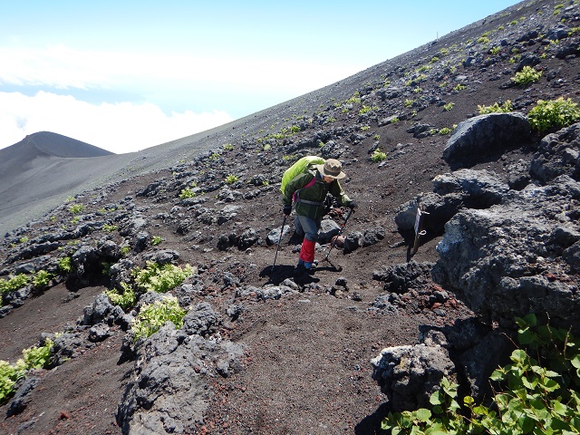 <行程>7/17佐野4:00-6:50御殿場口P(駐車)8:15-8:30水ヶ塚公園9:00-9:35富士宮登山口10:00~10:34富士宮六合目~11:56宝永山~13:08御殿場六合目~13:57七合目~15:24赤岩八合館(小屋泊)