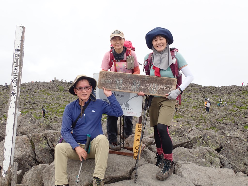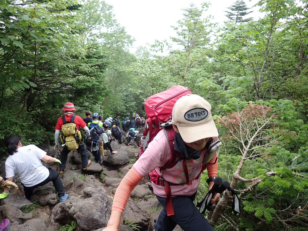 <概要>休日の百名山は人だらけだった。晴天だったが山頂はガスに包まれて眺望はダメ。私は途中からバテ気味で、いろいろと反省の多い山行になった。