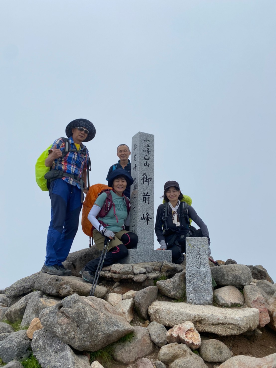 16日白川郷を観光して、ホワイトロード経由で市ノ瀬に入り北原さんと合流。キャンプ場でテント泊し、翌朝霧の中白山へ。山頂もガスがかかっていたが夕方ガスが晴れて回りの景色が見えた。クロユリの群生をはじめたくさんの花が見られ、思い切って行ってよかった。