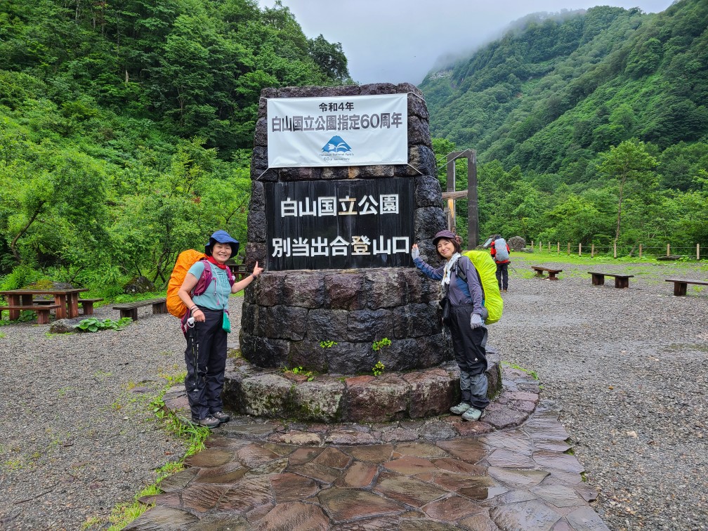 16日毎日天気予報とにらめっこをしながら迷ったが思い切って行くことにした。東部湯ノ丸からほぼ下道を使い白川郷経由で市ノ瀬まで400km。多少時間はかかるが100km短縮。夕立が来そうな空模様の中白川郷の集落を散策した。一回りしたところで雨が本降りになり車へ逃げ込んだ。ホワイトロードに入り観光スポットに立ち寄りながら市ノ瀬のキャンプ場に17時半到着。北原さんが首を長くして待っていた。路駐の車がたくさんあり土曜日に入った登山者もたくさんいたようだ。水はけのよさそうな場所を探しテントを張り就寝。夜中かなりの雨音がした。翌朝雨も上がりテント撤収、6時40分のバスに乗り別当出合へ向かう。(片道800円)別当出合に着くとまた雨が降り出し、休憩所では多くの登山者が支度をしていた。こんな天気でもみんな来るんだねぇと迷ったのが何だったかと思う。支度をしているうちに雨も上がりガスのかかる中歩き出す。樹林帯の中で蒸し暑く汗が噴き出す。早速道の両脇にお花が出てきた。十二曲がりのコースに入るとお花畑が広がり写真撮影が忙しくなる。黒ボコ岩を過ぎ弥陀ヶ原に出るとクロユリが現れた。ガスも上がり景色も見え始め気持ちも軽くなる。ほどなく室堂に着いた。しばらく休んだ後山頂へガスの山頂だったが一瞬晴れホワイトロード側の山容が覗いて見えた。山頂を越え御池巡りはかなりの急下降、ガレ場を下る。雪渓もあり慎重に行く。こちらもお花畑がいっぱい。周回して室堂に戻った。自然観察委員さんとの観察会が開かれ女性陣は参加しお花について知識を深めることができた。夕方は晴れ間が広がりくっきりと山頂が現れ別山の滝雲が美しかった。翌朝は晴れたら山頂へアタックの予定だったがガスと風が強く諦めてゆっくり支度をして下山した。自然観察委員の方に観光新道の方がお花畑がいっぱいだからと勧められ行ってみると登りでは見られなかった花がいっぱい。雨も降りだしてしまい写真はあまり撮れなかったが、たくさんの花が見られて大満足だった。下山後は白峰温泉で汗を流し昼食をとり越前大仏のある勝山市へ1時間ほどドライブ。インスタ映えの観光地としてクイズ番組でやっていたので行ってみた。奈良の大仏よりも大きいそうで圧倒された。19日は天気が悪そうなので荒島岳は断念することにした。大野市の宿に北原さんを送り荒島岳の登山口を偵察して帰路についた。