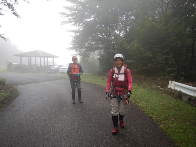避難小屋から2時間弱で駐車場に到着。クルマは朝と同じ3台のみでした。登山口には山頂から下りてきたばかりの人が帰える支度をしていました。聞くと袈裟丸山山頂は、霧で視界ゼロだったようでした。