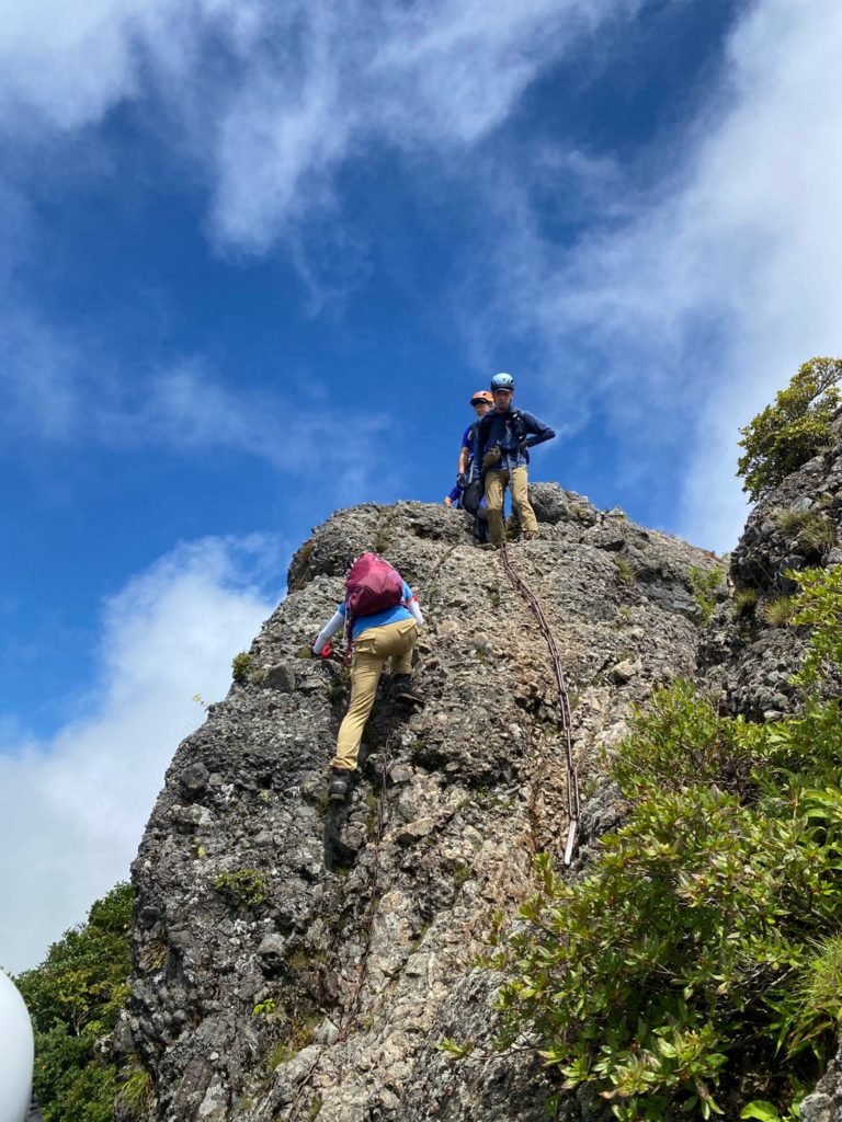 北海道の長期山行から帰ってまだ疲れも抜けきらないが、行ったことのない八海山の計画があったので参加した。この時期なので暑さは覚悟していったのだが、しょっぱなから滝のような汗が流れる。尾根に出て涼しくなることを期待したが風もなく暑かった。途中メンバーの一人が熱中症になり大日岳手前のう回路からリーダーと下山。残る4人で大日岳まで行った。鎖やはしごが連続し、う回路も濡れたトラバースでずっと気が抜けなかった。ガスっていなければ越後駒ケ岳や巻機山が目の前に見えたのだろう。晴れ間は最初だけだったのでダイナミックな景色を見に好天の時に再訪したい。六日町の湯らりあ(440円)で汗を流し帰路についた。