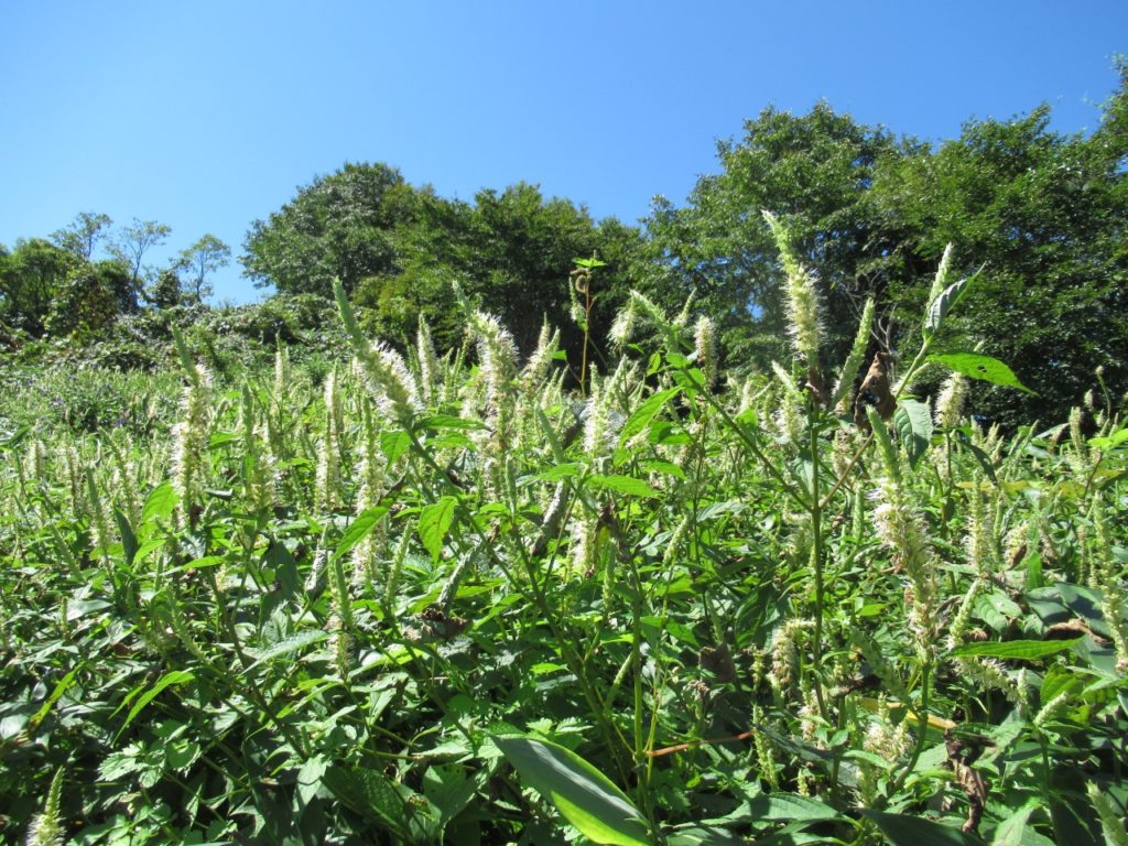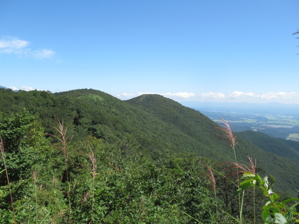 <詳細報告> この週末、久し振りに東北方面の天気が良さそうなので、カルチャーセンターのチラシで見かけた、郡山と猪苗代の境にある大将旗山、額取山に出掛けました。山名の由来は、ここで戦国の武将が元服前に額髪を剃った、とか大旗を掲げたとかの様です。早朝は雲が多かったが、次第に青空が見え始めすっきり晴れ渡りました。御霊櫃峠(ごれいびつとうげ)までの林道は、広くはありませんが舗装され、十数台は停められる駐車場とトイレも完備されていました。小高い丘を越え大将旗山まで1時間程、期待はしていませんでしたが、マツムシソウ、アザミ、アキノキリンソウ、ハギなどまだ花は見られました。ススキ、オオカメノキの実、キノコも見られ、もうすっかり秋のたたずまいです。ここから気持ち良い稜線歩き、途中ボランティアで藪を刈っている方がおり、「よく来るから自分が歩きやすい様にしているだけです。」とのことでしたが、頭の下がる思いでした。大小のピークを幾つか越え1時間で額取山に到着、360度の展望で猪苗代湖、磐梯山、吾妻連峰、安達太良、郡山の田園風景が綺麗に見渡せました。大休止後往路を戻り、磐梯熱海温泉で一汗流し帰宅、初秋の稜線をのんびり、気持ち良く歩けました。