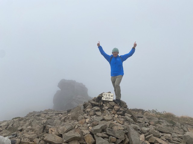 <詳細報告>小山を1時に出発。東北道をひた走り八幡平まで6時間以上の長旅。ほとんど寝ていないのと一人で運転するのでそれなりに体力を奪われる。八幡平レストハウス下無料駐車場には数台の車があり、準備をしてレストハウスに向かう。レストハウスに至る途中にトイレがあり、暖房が効いており素晴らしい。レストハウスには一台の車もない。裏岩手縦走路までは車道歩きを1Km弱。ここから畚岳が綺麗に見える。畚岳からはやや色付いた縦走路が見えて、やる気が出る。ここからしばらくは樹林歩きとなり、朝は晴れていたのに徐々に曇ってきた。ぬかるんだところもあるが、おおむね歩きやすい道で、嶮岨森に到着すると池塘や周辺の景色や大深山荘も見えて、気分が晴れる。程なくして山荘到着。山荘の前のテーブルに日帰りと思われるおじさん数人が話していた。とても清潔な小屋で、入口には泥除けマットがあり、入ると男女に分かれたトイレ、小屋は2階建になっており、綺麗な毛布が用意されている。我々しかまだ到着していないようで、ここに荷物をデポして日帰り装備でさらに三ツ石山まで向かう。大深山までは人がいたが、それより先ではほとんど人に会うことがなかった。小畚山付近は黄色たまにオレンジの紅葉がみられた。風が少しづつ強くなってきて、三ツ石山が近くなると人が増えてきて、風がビュービュー吹いているので、大きな岩を風除けにしようとしているが全く風が避けられていないのが面白い。山頂で強風の中写真をとってすぐ山頂から下山開始。曇っているため岩手山方向の縦走路が見えず、紅葉ははっきりわからなかった。風が弱くなる樹林まで戻ってランチタイムとした。皆寒くなるとは思っていなかったのか、お湯を持ってこず、冷たいスポーツドリンクは失敗だった。長居せずに山荘に戻る。戻る道の方が紅葉が綺麗に見えた。山荘についてしばらくすると60代くらいの男女がまず小屋に入ってきて、その次にソロの40代くらいの男が入ってきた。4時くらいに食事開始とした。今回はまずpatagoniaが出しているムール貝の缶詰とオリーブオイルをフライパンで炒めて、そこにいつものシーフードミックス、さらに追加でむき海老、しらすを投入し魚介のアヒージョを作って、寒かったのでホットワインで乾杯。体が温まりsmall twistシリーズのミートソースペンネがメインでここからは常温のワインに移行した。食事が終わる前頃に、雨に濡れたおじさんが入り口のドアを開けっぱなしにして靴を履いたまま入ってきて、さらには2階に上がる階段も靴を脱がずに上がっていくので、つれが「靴を脱がずに階段を登るのは非常識ではないですか、泥が落ちてきて我々食事してるんですよ」というと「すみません」と行っておりて靴を脱いでまた上がっていった。このおじさんおパーティーと思われる男女が入ってきて、ヘルメットをしているので、一体どこを登ってきたのかわからず、18時過ぎの外は真っ暗な中、小屋に来るあたり、非常識極まりない連中であった。毛布もあり、夜は快適に寝ることができたが、夜中はゴーゴーと暴風雨の様相であり、朝が心配だなと思いつつトイレに起きた。4時には周りの人々が起き出してゴソゴソ始まったので、我々も起きてsmall twistシリーズのクスクスのカレーを作って食べた。うまし。6時前に出発する頃にはかなり雨は弱くはなっていたが、完全雨具で下山開始。30分もすると雨も止んで周りが綺麗に見え始めた。昨日は気づかなかった紅葉の色が見え始め、わざわざ岩手まできた甲斐があったとみな感動。3時間でレストハウス到着。近くの藤七温泉という秘湯に行った。硫黄の強烈な源泉が流れ出ており、近い露天は熱すぎて入れず、最も下段にある露天が唯一入れた。2人の男が入っており、一人は地元の人、もう一人は大阪から来たと言っていた。つれは2人とも女性であったが、女性専用露天風呂に入るには男風呂の前をかなりの距離通過せねばならず、露天は断念したようだった。内風呂は逆にぬるいので、出て待っていると、ぬるくて暖まれなかったとぼやいていた、ここはGWから10月くらいまでの季節限定の旅館、というか八幡平への道が冬季閉鎖してしまうのであった。気を取り直して田沢湖でも行きますかというと是非にとのことで、田沢湖に向かった。私はこれで4回目のたつこ像であった。田沢湖から盛岡方面に戻る途中道の駅雫石あねっこに立ち寄り、腹が減っていたのでわさび冷麺とわさび飯のセットとさらにラーメンまで食べた。美味いのでペロリ。帰路に着いた。小山には19時30分頃到着した。今年は東北の遠出が多い。