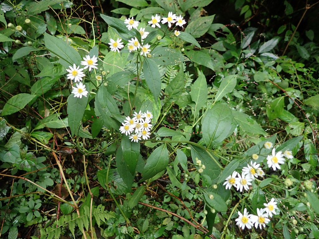 ノコンギクとヨメナは似ている。葉がノコンギクは毛があるのでザラザラしているが、ヨメナは毛が無くツルツルしているという。現地で触れなかったのでよくわからないが、写真からは光沢があるように見えるのでヨメナかも知れないが、花びらが落ちた後に白い綿毛が残っている写真があったので、ノコンギクとした。花は現地での観察を怠ると判別に苦労する。