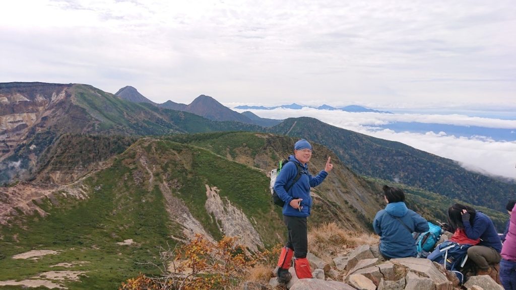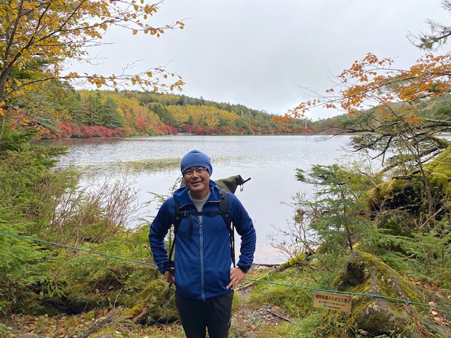 翌朝雨なら帰ろうと言っていたが、周囲も明るいので、せめてにゅうまでは行こうと出発。どろどろの道で、高校生や大学生の大軍団はまたもや白いスニーカーやらでキャアキャア言いながら登っており、なめてんかいと言いたくなったが、そんな人々が大勢いるので、こんなもんか北八ヶ岳はと考え直した。にゅうが近づくと、なんとぽっかり富士山が見えるではないか。一気にやる気が出てにゅうの山頂に着くと大勢の人々がおり、たまに顔を出す富士山をバックに写真を撮った。にゅうから中山峠に向かうと途端に人がいなくなり、その頃まだ天狗岳にはガスが上がっておらず、眺望が期待できるので、行くかとなり天狗岳に向かった。見晴らし台や天狗の鼻からは周囲のアルプス群が展望でき、ようやく山頂へ。多くの登山客で賑わっていた。ランチタイムは職場から配られた非常食のパンを食べたが、乾パンのように硬くなくしっとりしていて思ったより美味しかった。山頂は風もあり寒い。コーヒーが美味かった。南北アルプス、金峯山、甲武信岳、いろいろ展望できあまり期待をしていなかった分感動ひとしおであった。雨が降らないうちに下山しようと、あまり長居せずに下山開始。天狗の裏庭付近の眺めは素晴らしい。紅葉はところどころ見られるが色付きが良いとは言えなかった。黒百合ヒュッテに着くとビーフシチューをみんな食べており、めちゃくちゃ美味そうだったが我慢して通過。そこから一旦中山峠に登り高見石小屋までいかにも滑りそうな岩場を慎重に下りた。途中のカップルが「揚げパン、揚げパン」と唱えながら下りており微笑ましかった。私自身は揚げパンにはなんの興味もなかったので、小屋では水を飲むだけで駐車場に向かった。ここでも普段着の家族連れ、多数登ってきており、天気予報を知っているのかな、泥でぐちゃぐちゃになるよその服と靴ではと驚きの連続であった。最後の朽ち果てた木道がめちゃくちゃ滑りやすくて、何気に今回の核心部分はここ?と思うような危なさであった。白駒池に到着してホッとして、駐車場に向かうと、朝には大渋滞であったが下山時には全く並んでいる車はなかった。八峰の湯という小海町の運営している温泉に行くと、こんなに混んでいる日帰り温泉は見たことがないくらいの状態であった。女性風呂ではロッカー待ちであったという。風呂から出ると外は大雨で、「下山が少し遅れていたらずぶ濡れだったね、ラッキー」と言いつつ、その施設で名物と写真が貼ってあった小海そばを頼んだが、手打ちでなくて味も普通で、ガッカリであった。かき揚げも普通であった。小山には19時頃到着した。