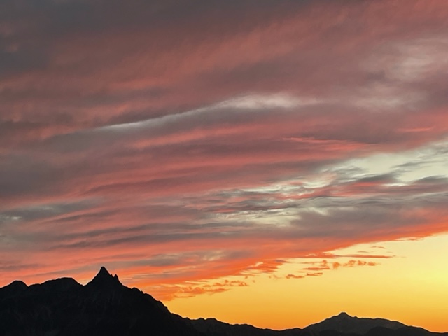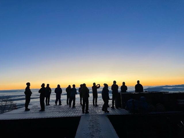 私たちも外に出て、素晴らしい夕焼けを目に焼き付け、夕焼けに染まる山々の景色を写真に収たりと、最高の時間を過ごした。