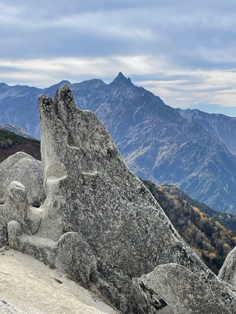 燕山荘からの下山前に、再度イルカ岩まで往復した。8:00下山開始、良い天気なので