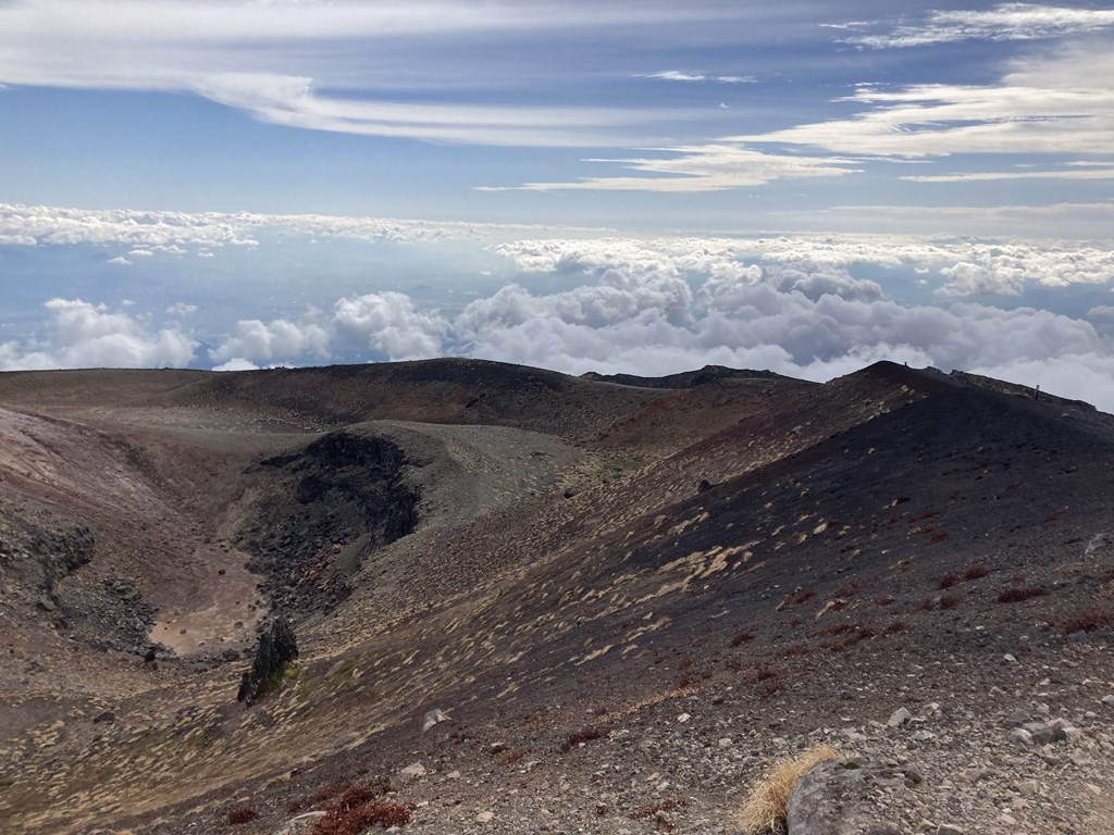 馬返し登山口から出発。前日の早池峰山で会った人から岩手山は雪だったと話を聞く。駐車場から見た感じで雪はなかったがチェーンアイゼンを携帯。八合目避難小屋は、小屋仕舞いの準備中。よこさか(妻)は胃が痛い、登頂は難しいと言うので避難小屋で休憩をさせる。避難小屋の人に話をして妻が休憩している間に私は岩手山山頂へ行く。8合目からは、それほど急登はなかった。避難所に急いで戻り、妻の体調も大分良くなっているようなので再度山頂にいく。山頂は、天気も良く外輪山が綺麗でした。山行は10時間30分、無事に戻れて良かったです。