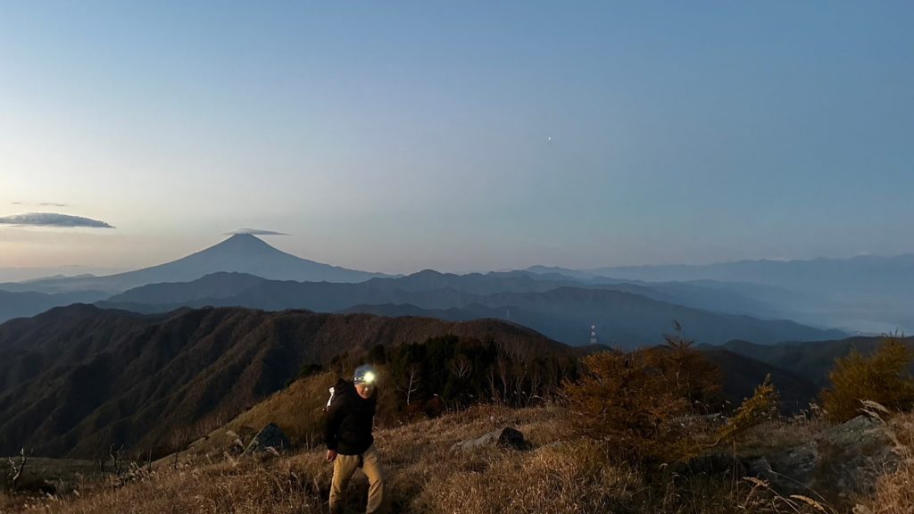 朝ご来光を白谷ノ丸で見るために、5時過ぎには荷物を全て車に移動して出発する。ここは一番良い眺望のところで、雲が東の空にあるため、くっきりとしたご来光ではなかったが、富士山の笠雲といい、絵になるところであった。他には人はいない。ご来光を楽しんだのちに、黒岳に向かう。前回、前々回とも初冬に歩いたので、霜が溶けてぐちゃぐちゃの道であったが、今回はほぼどこも乾いており、歩きやすかった。草原は風の谷のナウシカ、最後ナウシカがオームに飛ばされて生き返るシーン、大ババ様が「おお、その者、蒼き衣を纏いて金色の野に降り立つべし」というシーンを彷彿とさせた。黒岳は三角点はあるものの、それほど見通しは良くない。牛奥ノ雁ヶ腹摺山は最も長い山名とのことだが、眺めはよかった。頂上は樹木がなくひらけていた。ここからさらに小金沢山を目指した。小金沢山は180度視界が良い。ここでパンを食べながら休憩。人はいない。時折すれ違ったパーティーはいたが数組だけ。いい縦走路なのに。大菩薩嶺だけではもったいない。復路はそのまま戻り最後の白谷ノ丸から少し外れた展望スポットがあり、そこに立ち寄る。大きな岩がそこだけニョキニョキ立っており、棚田のように段々で、テント張ったら気持ち良いだろうなと思った。富士山バックに岩の上でポーズをキメる連れがいた。そこから程なく湯の沢峠に戻ると若い女子のパーティーなどが準備をしていて、車もほとんど駐車スペースがないくらいに増えていた。みなおそらくハマイバ丸の方に向かったのであろう。