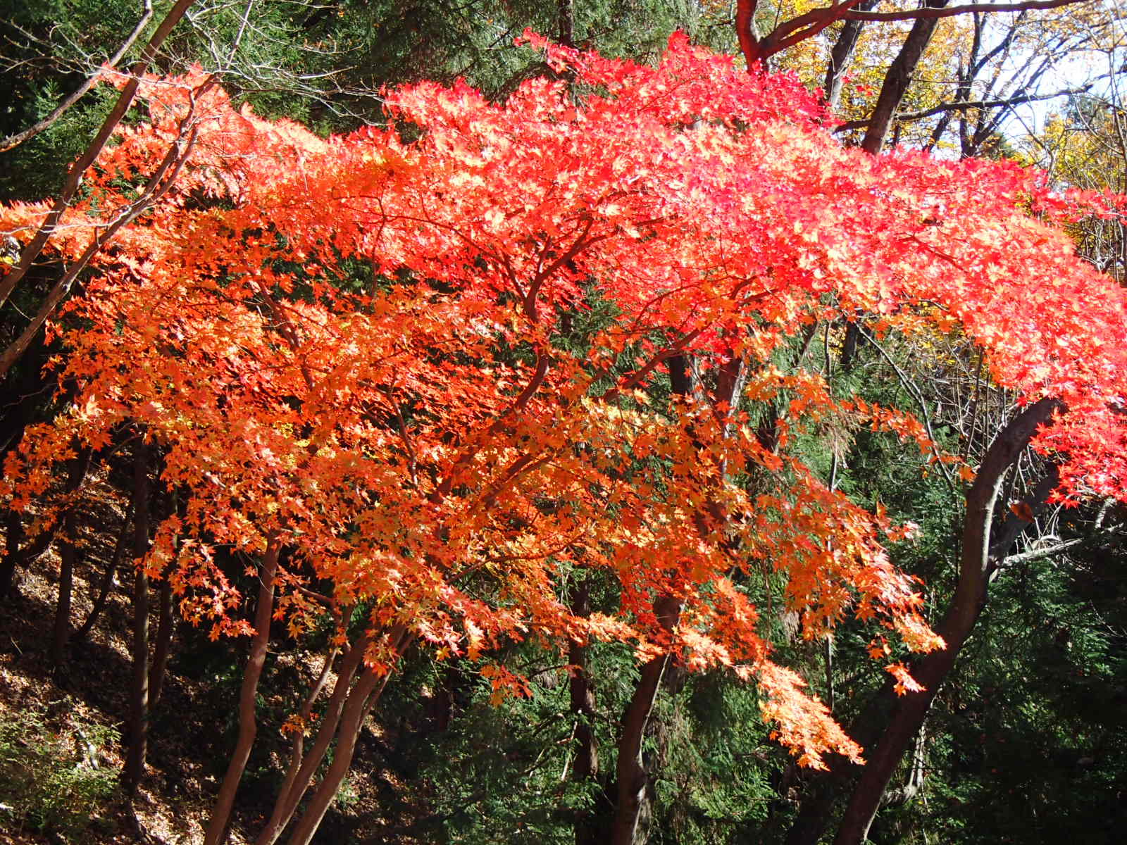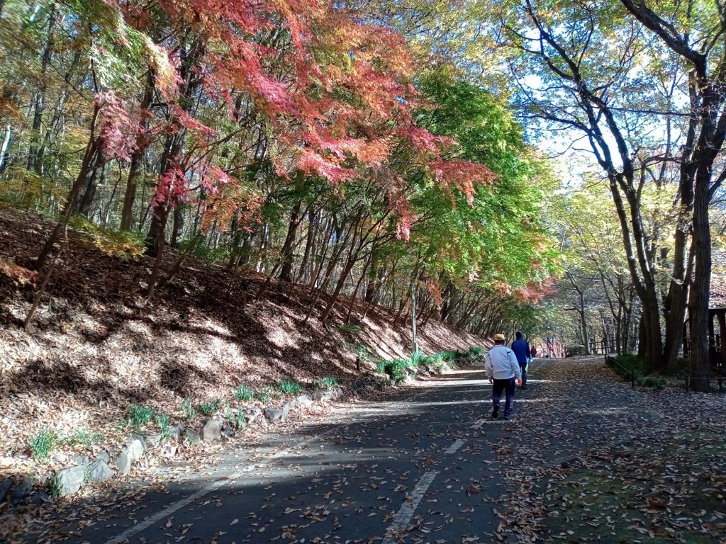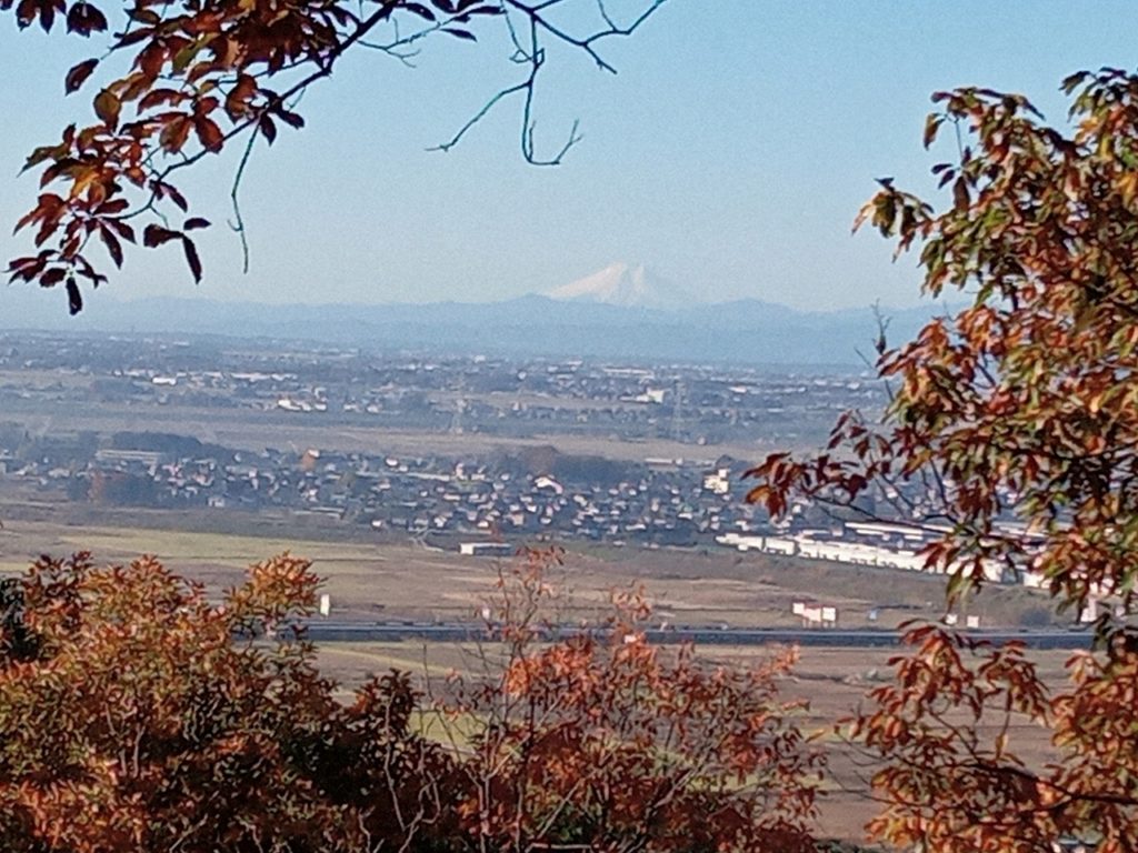 <詳細報告>この日の気温はスタート前は肌寒かったのですが、薄着で出発。スタートして30分ほどでみかも山最高峰の青竜ヶ岳山頂(229m)に到着しまし。山頂は展望が良く、日光の山々、秩父の山々、浅間山、富士山がはっきり観ることができました。この日のみかも山は紅葉がとてもきれいで、アップダウンの疲れも忘れるほどでした。