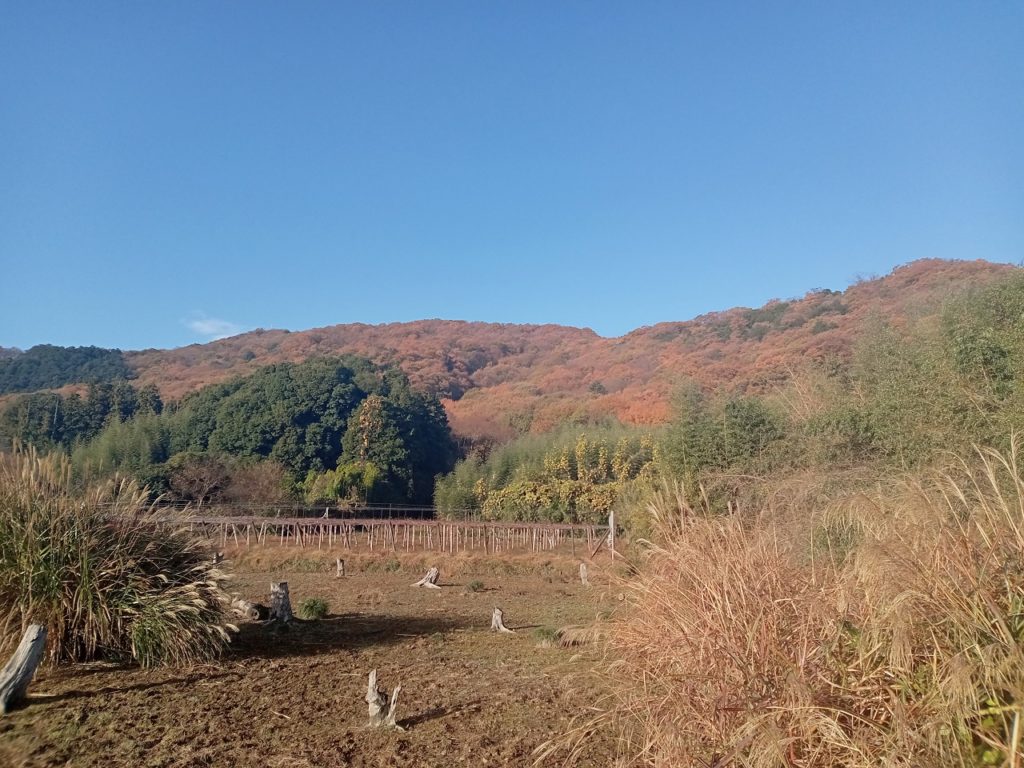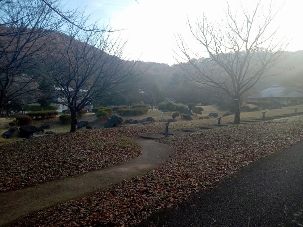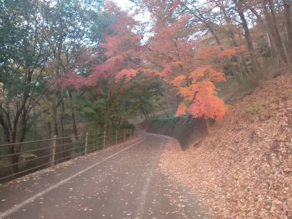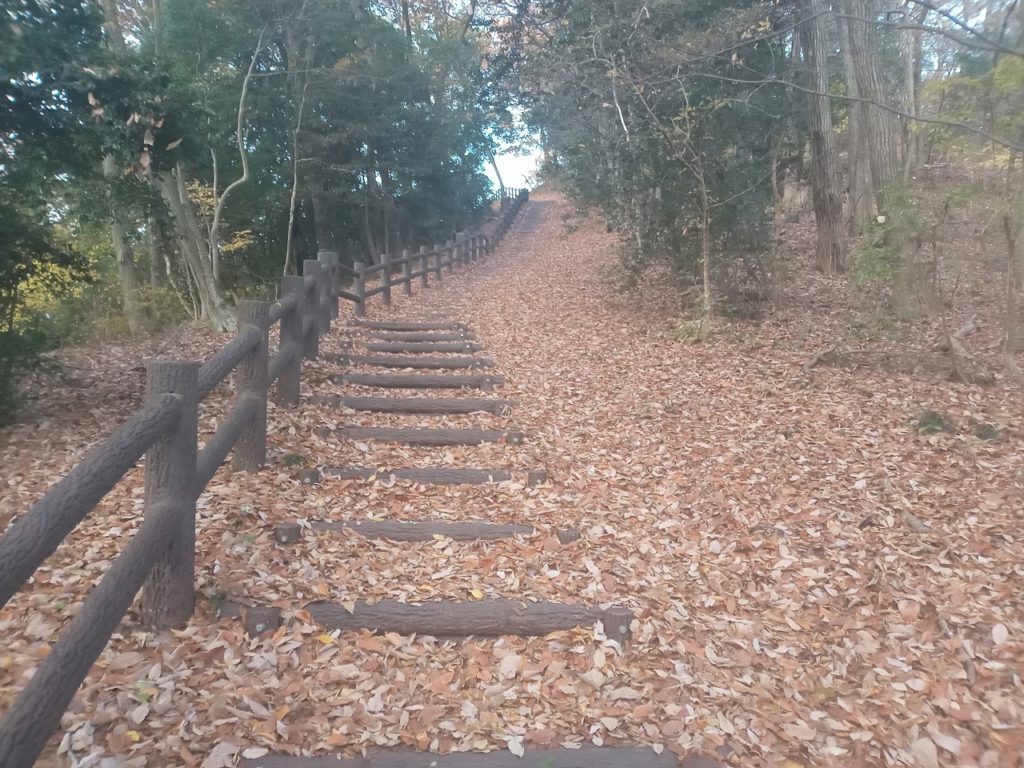 青竜が岳からカタクリ山へ向かう急な下りのところ、その積もった落ち葉で足を滑らせて、背中を強打してしまいました。それからは足元を注意しながら東口まで下りました。