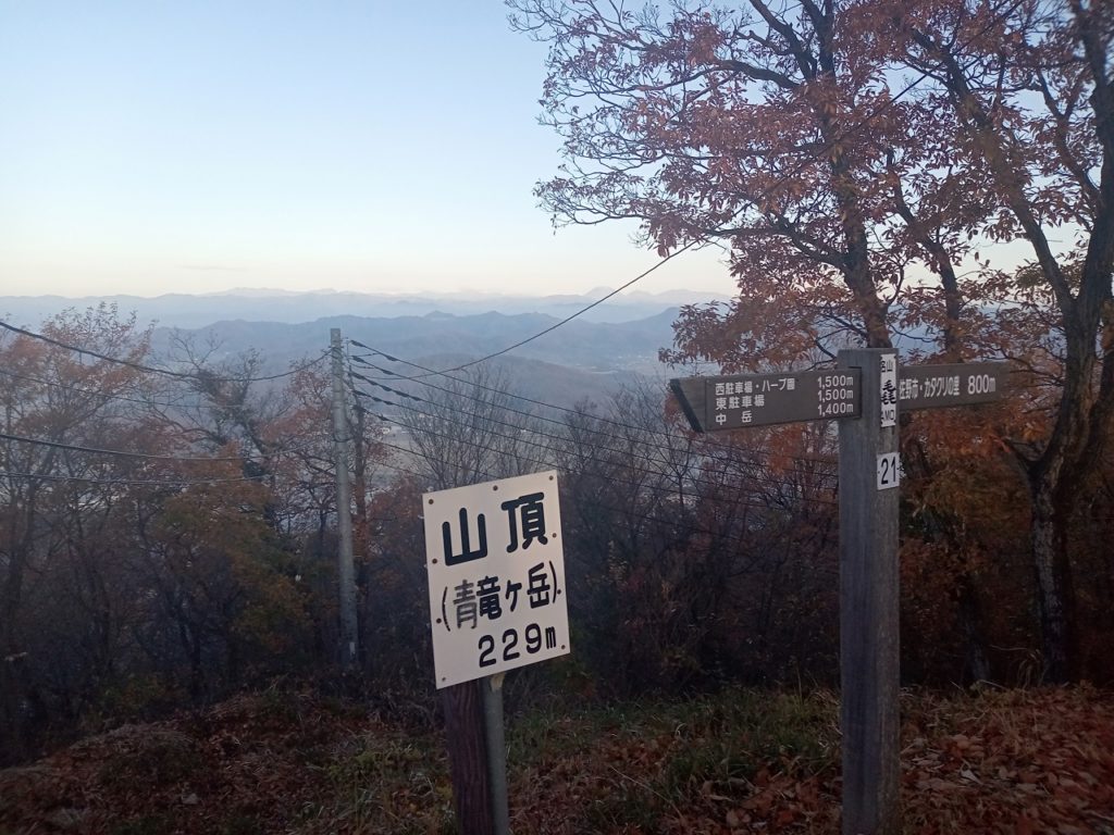<行程>みかも山東口(24m)6:25~6:52わんぱく広場入口(103m)~7:10黒立岩(122m)~7:19万葉庭園(29m)~7:43青竜ヶ岳(229m)~8:02カタクリ山(160m)~8:35みかも山東口(24m)