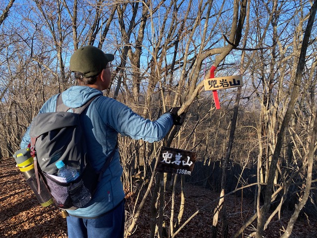 <詳細報告>まくらがのさと道の駅古河に4時30分に集合し、北関東道経由で下仁田までゆき、荒船不動駐車場へ。他に赤いFITが一台ある他は登山者なし。始めは林道で、そのうちに沢を何回か渡り急登となる。落ち葉があり滑りやすい。御岳山を経てローソク岩の横を通過し、兜岩山へ。山頂手前の見晴が良い場所があり、浅間山、北アルプスがよく見える。兜岩山からピストンで戻り、星尾峠へ。ここから雪がついており、滑りやすいため、登りは良いが、降りはチェーンスパイクを履くことに決めた。