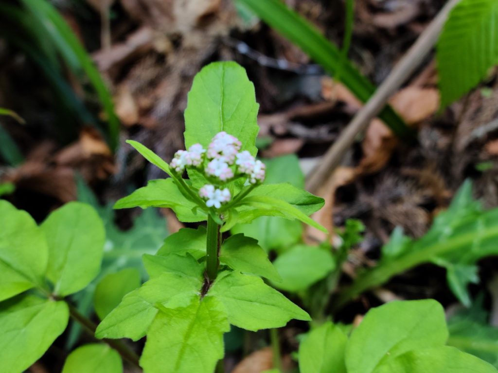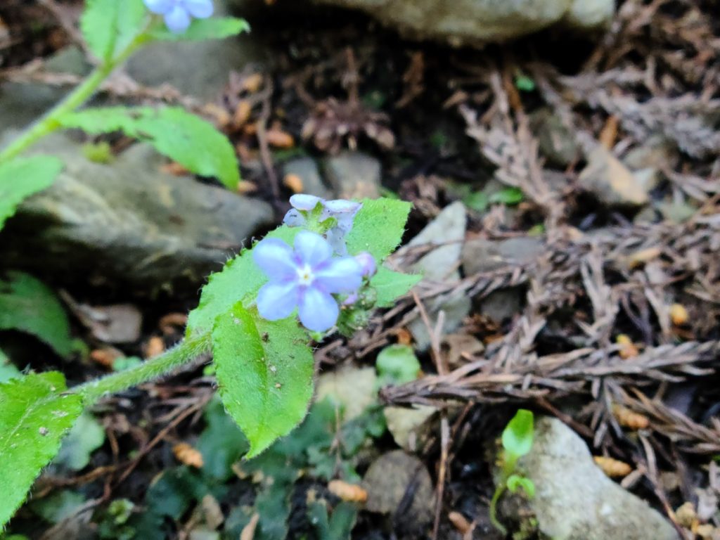 神社の登山者台帳に記名しお参りをして出発。歩きだしからニリンソウの群生に迎えられる。ここから花を見つけては立ち止まり三人であれこれおしゃべり。しびれを切らした夫は先へ進み、奥の院で待っていた。奥の院までは急登や危険箇所のトラバースもあり慎重に歩いた。