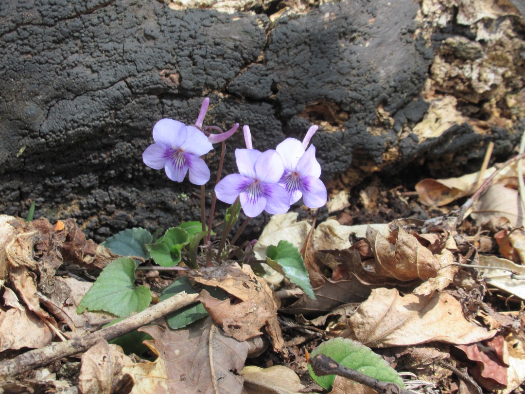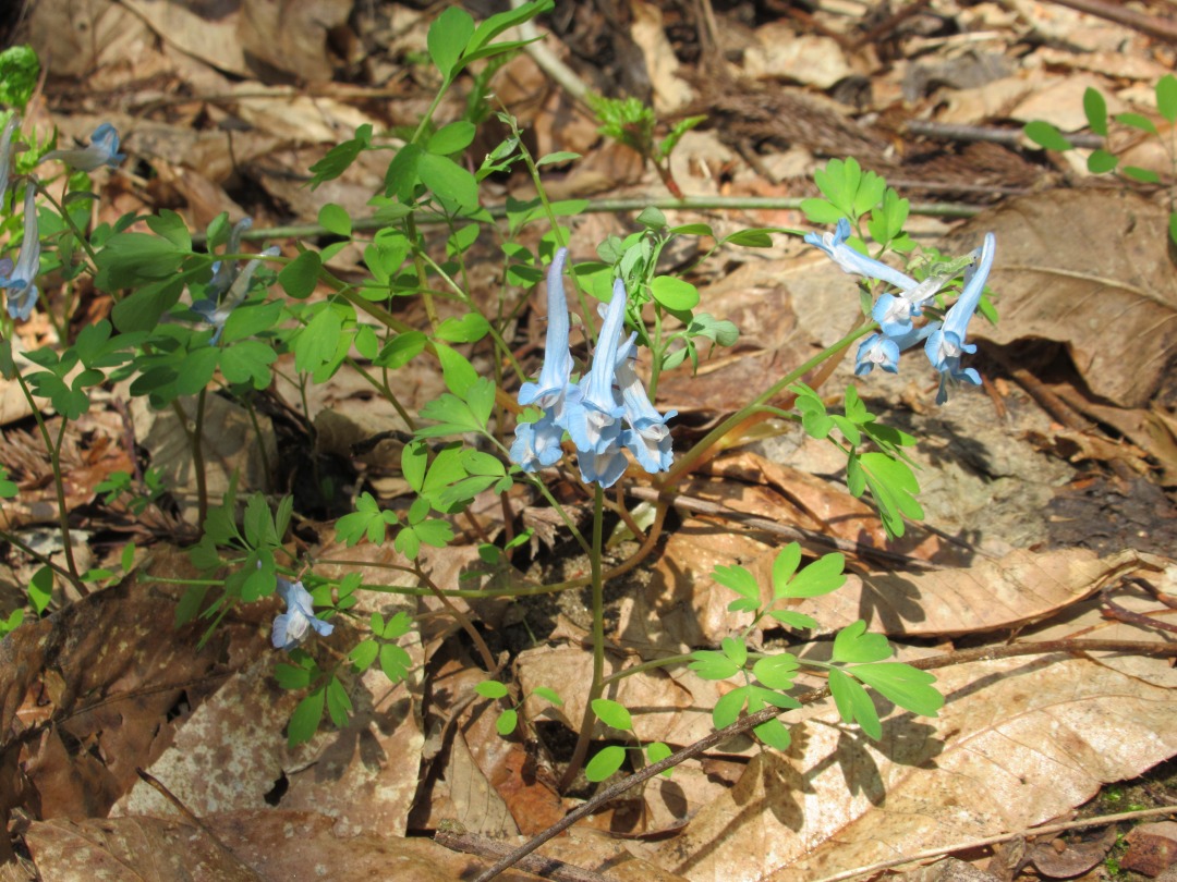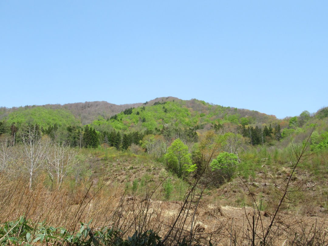 <詳細報告>大型連休前の平日のためか、奥川高陽根登山口駐車場は私達含め3台だけ、相変わらずのぬかるみです。中ノ沢は水害で至る所で岸が削られ橋も流されて無くなり、水量の多い沢を渡渉する箇所もありました。山頂にはまだ雪も残っている様ですが、中腹までは眩しい新緑が広がっており、スミレ、エンゴグサ、エンレイソウ、トウゴクサイシン、チャルメソウなど春の花々で一杯、山頂手前にはイワウチワの群生も見られる様です。 (中腹の詳細は会員HPに掲載します)