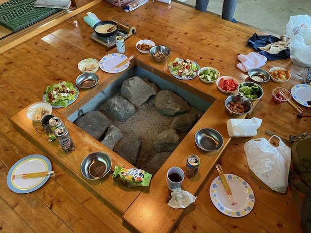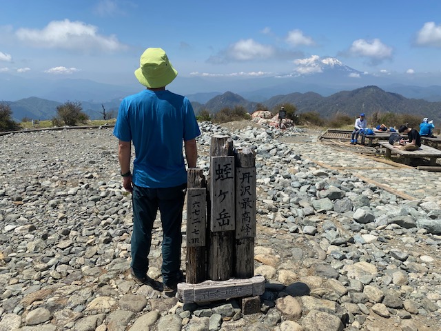 <詳細報告>小山を4時に出発、圏央道は鶴ヶ島あたりから激混みで、なかなか八王子ジャンクションまで辿り着かなかったが、そこを越えると道志村まではスイスイといき、登山口駐車場には6時40分到着。登山口からは緩やかな登りで、登山道も整備されており登りやすい。そのうち九十九折りとなり加入道山到着。富士山他南アルプスもよく見える。天気よく暑くなっていたが、風が吹くと爽快だ。そこから大室山に向かうといくつかの小ピークがあり、大室山到着。ここには数組の登山客もいた。昼食としてまたピストンで戻り、下山後登山口からすぐのところにある 道志の湯 にいき温泉に入った。内風呂は緩くカルキくさい。露天はまあまあの温度ではあったが、温泉?であった。その後10分くらいでバンガローに到着した。バンガローというよりは別荘のような作りで、外にはバーベキューのできるあずまやもあったが、汚れるので、今回は他のメンバーがチーズフォンデュを作ってくれた。最近自宅でアルコールを飲まなくなったので、なんと缶チューハイ2本でいい感じに出来上がってしまい、19時には就寝。他のメンバーの話によるとメガネをつけたまま、まっすぐ微動だにせず寝ていたらしい。翌日は3時に起きて準備をして5時には青根小学校に向けて出発。小学校を通り過ぎ釜立林道に入ったが、道幅が私の車ぎりぎりしかなく、さらに駐車場は満車で、地元のおじさんがここに止めなといった崖ギリギリの隙間になんとか駐車できた。登山口までしばらく林道歩きで、登山口からはずっと九十九折りの急登が続く。息がきれる。黍殻山避難小屋にトイレのために立ち寄った。小屋は極めて綺麗で大きい、しかしトイレは汚かった。ここから姫次までは緩やかな登りとなる。天気が良いので皆かなり汗をかいていた。姫次で少し休んで、地蔵平に向かう。登山道はよく整備されている。小さなアッパウダウンを繰り返し、そのうちに木道の階段が出てきて、これがとても長い。山頂がなかなか見えないので、精神的に厳しい階段であった。蛭ヶ岳山頂に到着すると、富士山、南アルプスが綺麗に見えた。山頂は広い。ベンチで昼食とした。メンバーの一人がトイレに行ったが、100円持って行ったら200円と言われて、帰ってきた。100円追加して持ってゆくかと思いきや、もういい と言っていかなかった。下山開始、木道階段は下りは早い。あっという間に地蔵平に到着。そこからは話をしながらゆっくり下りて、14時には登山口へ。道路もそれほど混んでいなかった。