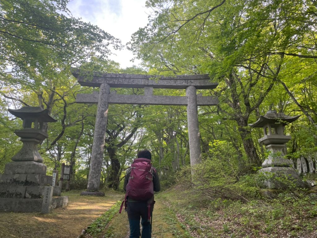 <詳細>ヒュッテを7:00前に出発、剣山本宮宝蔵石神社で参拝し剣山山頂に向かう。