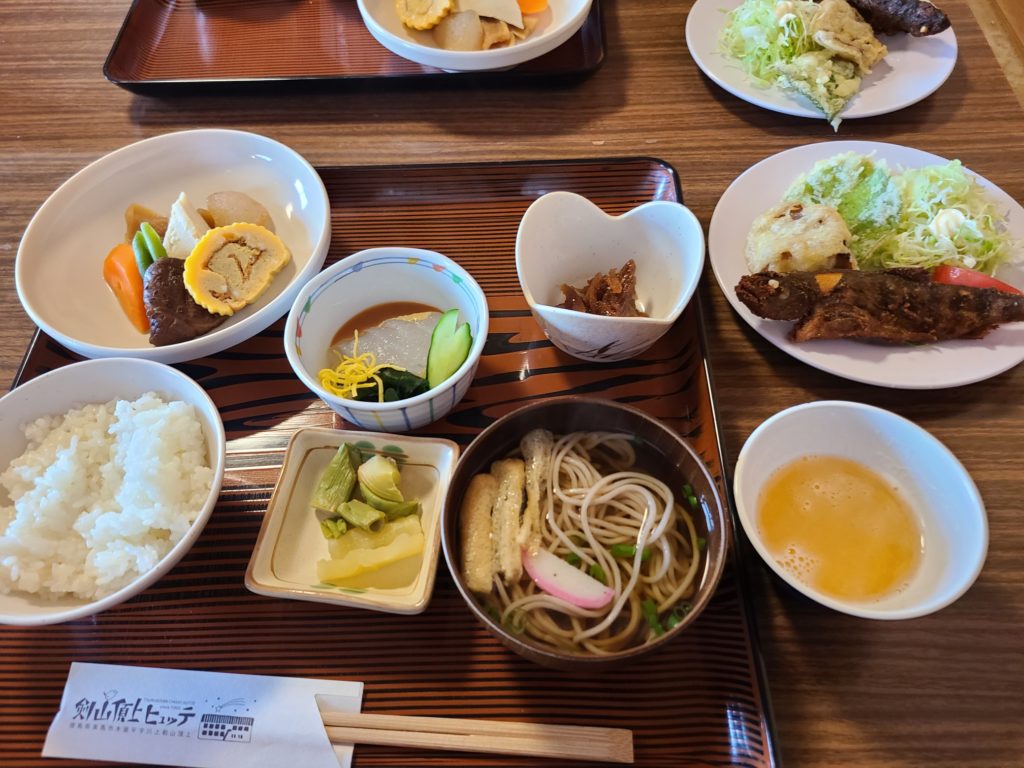 夕食は地元の食材や伝統的な保存食が中心で、アマゴの唐揚は特に美味しかった。