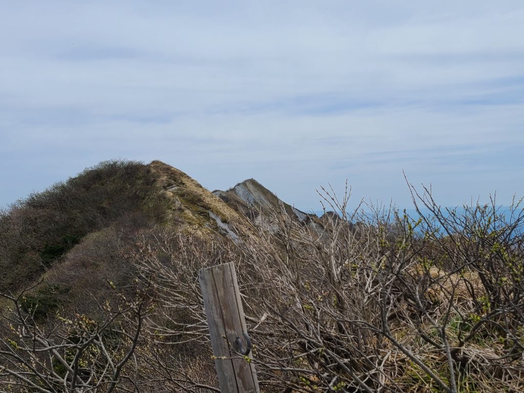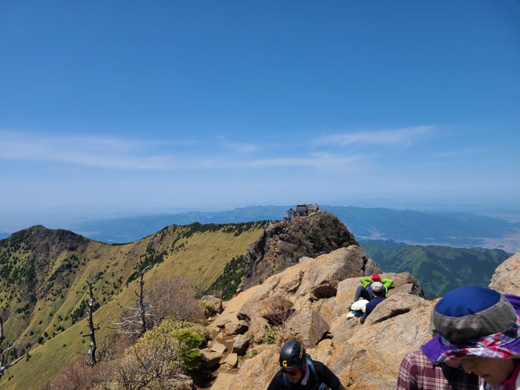 天狗岳に行き交う人達で声かけしながら、狭い稜線を安全に歩く様子が良く見えた。天狗岳方面から方螺貝の音色が聞こえてきた。ここに来る途中に追い抜かれた修験者の方が吹いていたようだ。天狗岳山頂で、法螺貝を吹き鳴らす修験者の方の姿を見れたら最高だっただろうなあと思ったりもした。
