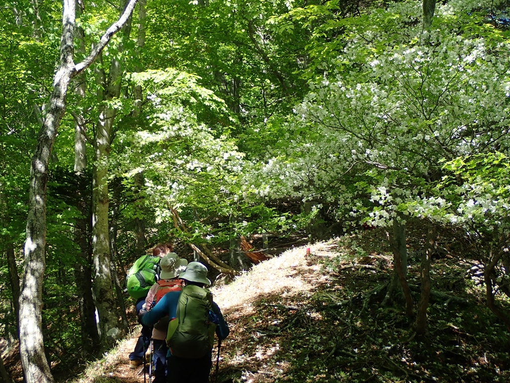 無事、下山。期待が大きすぎたので、少しがっかりした面もあるが、シロヤシオ、クリンソウなどの花を程ほどに楽しむことができた山歩きだった。また、青空に映える新緑が印象に残る山行だった。良い天気に山を歩くのは実に気持ちが良い。