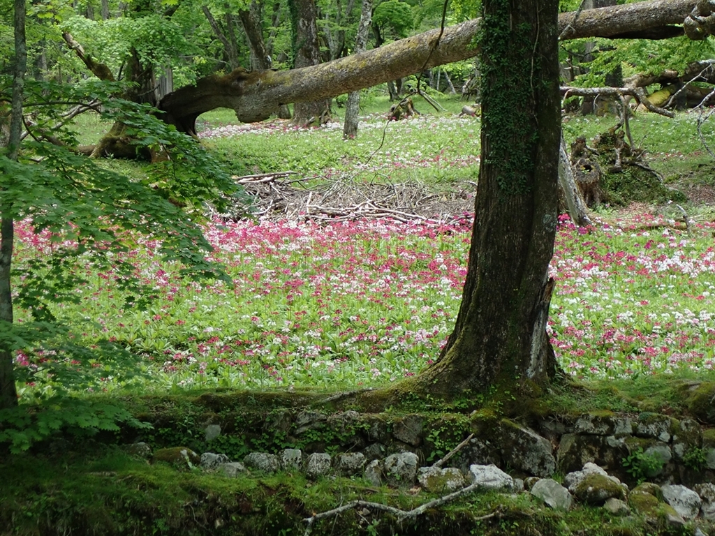 千手ヶ浜に着くと一気に人が増えた。お目当てのクリンソウを見に仙人庵へ向かう。多くの観光客がいたが、かつてのような群落は見られなかった。数年前から減っているという事はネット情報で知っていたが、かつて密生していた場所もまばらに生えているだけでした。