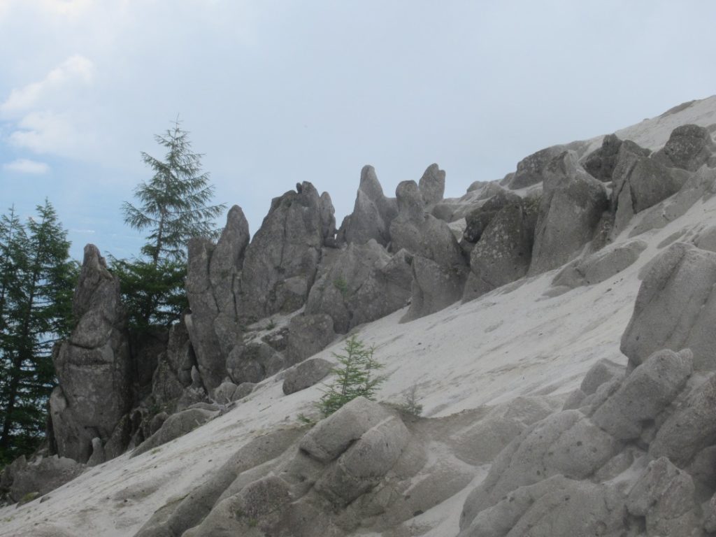 <詳細報告>梅雨時、山の天気予報は目まぐるしく変わります。この週末は東北方面の花を狙っていましたが、天気が良くない様でしたので、山梨北杜市の日向山に出掛けてみました。麓から甲斐駒が見えますが、ガスが掛かり眺望は期待できそうにはなく、満車は覚悟の上で中腹の矢立駐車場に行くと、幸い何とか停められ出発しました。コアジサイ、ギンリョウソウ、ケナツノタムラソウが所々に見られますが、花は少なく登り一辺倒の樹林帯のハイキングコースを1時間40分程歩くと山頂に着きました。最初は真っ白でしたが、次第にガスも取れ白い砂浜と花崗岩の岩稜が綺麗に見えて来ました。