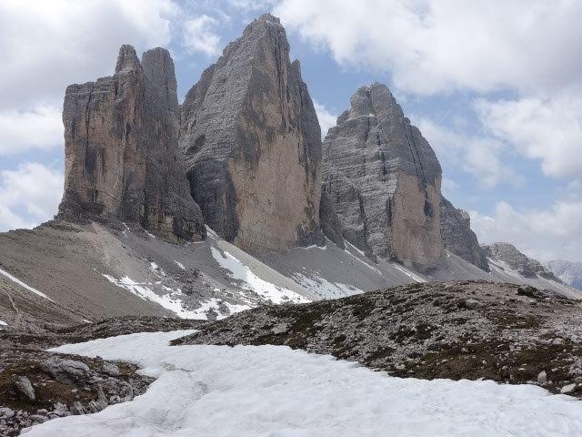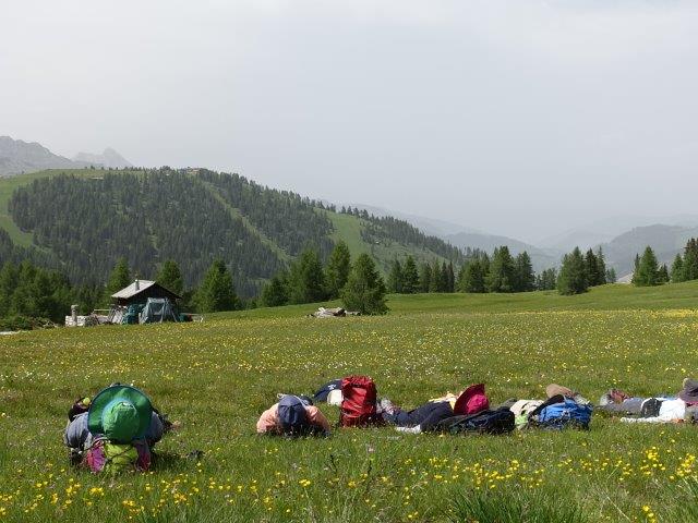 6/20 トレチメ・デイ・ラバレド周遊(7h) ドロミテは世界自然遺産に登録された景勝地で、太古の地殻変動によって隆起したサンゴ礁が氷河に削られ、切り立った尖峰や荒々しい剥き出しの岩肌が特異な景勝地で圧倒されます。随所で断層が確認され自然の凄さを感じることが出来ます。 トレチメ・デイ・ラバレド周遊で、5~6時間予定となっていたが、実際は7時間ほど掛りました。コースでは、多くのトレッカ-がおり人気のコースで有ることが伺えます。道中、色々な花との出会いがあり、シャッターを切る機会が多くなります。一つ困ったことは、営業小屋がありながら、トイレの使用が出来ず、ネイチャーを余儀なくされることでした。 景観と花々を堪能したあと、連泊のコルテイナダンペッツオに戻りました。夕食は外の場所でしたが、メニュ-を決めるだけでも大変、出てきた料理がまた量が多く、食の細い自分には大変でした。