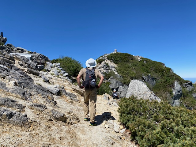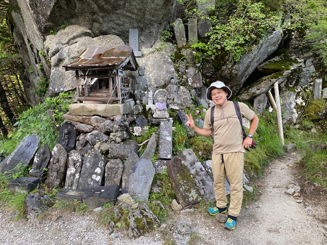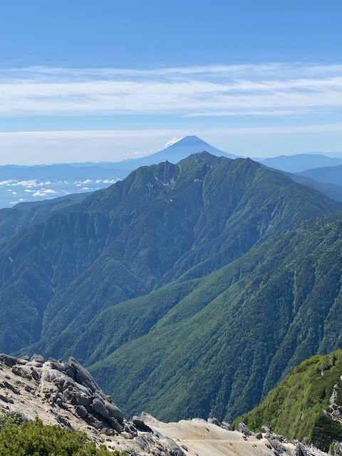 <詳細報告>小山を0時に出発、尾白川渓谷駐車場には2時30分頃到着した。駐車場はトレラン姿で準備している登山者などおり半分くらい埋まっていた。ヘッドライトをつけて出発。神社で登山の無事をお祈りしてから、吊り橋を渡り登山道へ。初めはやや急登くらいであるが登りやすいので順調に進んで、そのうちに傾斜が緩やかとなった。ここまでに数人のトレランハイカーに抜かれた。4時30分頃には空も明るくなってきて、5時過ぎに刃渡りに至り、ようやく周囲の景色が見えるようになった。注意すれば危険な場所ではない。このあとハシゴが何回か出てきて刀利天狗到着。ここで還暦のトレランハイカーと話をして驚いた。16回目の黒戸尾根とのこと。毎年この山に呼ばれている気がするらしい。あっという間に先に行かれてしまった。黒戸山の巻道から一旦下り、五合目小屋跡へ。ここからがハシゴ、鎖の連続となる。修験道のためか像や塔があり、趣を感じながら、しばらくゆくと七丈小屋に到着。水道よりじゃんじゃん水が出ている。ここで休憩して、ここから急登となる。テント場の脇を通り過ぎ、やや大きめの岩の段差のある急登をゆく。八号目で一気に視界がひらけて、山頂の祠が見える。しかしここからが空気が薄いのを実感する急登となり、あと200メートルほどの高度差がなかなか息切れで進まない。私を追い抜いて行ったトレランの方々はすでに登頂し、下ってきてすれ違う。何回か休みつつようやく山頂へ。10人以上のハイカーがおり、ほとんどは北沢峠からきたハイカーだった。雲ひとつ無いので景色は最高であった。富士山には全く雪がなかった。仙丈ヶ岳が真正面に見えており、緑の綺麗な山であった。日清カップラーメン シーフードビッグサイズを食べて、また元の道で下山開始。この時間になると黒戸尾根方面から登ってくるハイカーもそれなりにいてすれ違う。七丈小屋までゆき少し休憩。ハイカーの姿はあまりない。そこからハシゴ、鎖地帯に突入したので、慎重に下った。ここから登山口までが、えらい長く感じる。しかも気温が上昇し、汗が出てきた。登山口に着いたら炭酸が飲みたいななどと考えながら、尾白川の音が聞こえてきて、家族連れが川岸で遊んでいるのが見えてきたので、ああようやく終わりかとホッとした。駐車場に着いて売店でかき氷を売っていて、値段を調べずに注文するとなんと900円でしかもほんの少し、恐ろしいぼったくり値段であった。下山後温泉に入ろうかとも思ったが、中央道の混雑を考えて我慢して帰路に着いた。しかし談合坂から八王子ジャンクションまで渋滞の表示あり、故障車が2台別々の場所であったらしい。小山には18時頃到着した。3回目の黒戸尾根、今回は日帰り、体力のバロメーターを測るには過酷なピストンとなった。