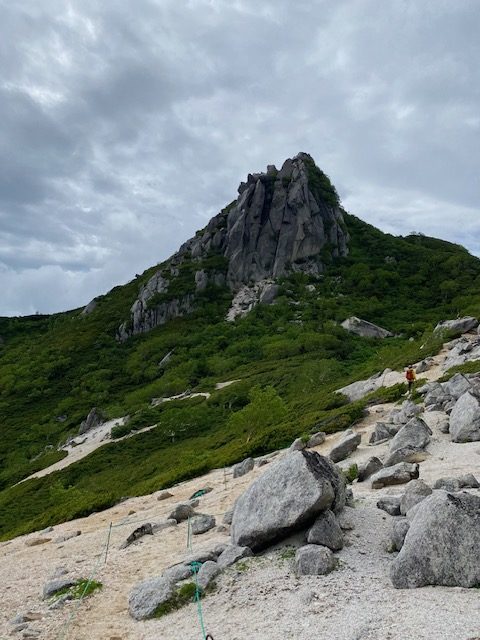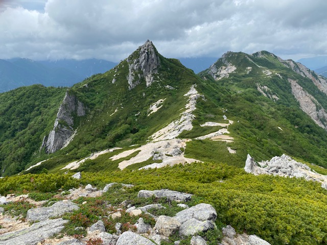 <詳細報告>小山を1時に出発、七倉温泉には5時に到着。駐車場は結構埋まっていて、タクシー待ちの人が10数人いた。タクシーは数台がピストン輸送していた。一人高瀬ダムまで定額800円。高瀬ダムでは雨が降っていたので、雨具での出発となったが、ブナ立て尾根の途中で雨は止み、雨具を脱いで急登をひたすら登る。とは言っても整備されている登山道で歩きやすいが、テント泊装備なので、ゆっくり登って行った。烏帽子小屋に到着し、テント場を探すと丁度いい雛壇で一つしか張れないしかも風が完全に避けられる場所を見つけ、そこで徹夜組は昼寝開始。14時頃起き出して烏帽子岳を見るとくっきり見えるので、登ることにした。コマクサの群落があったが、かなり疲れているように見えた。烏帽子岳は最後に少し鎖場が出てくるがそれほど危険ではない。いくつかのパーティーが登っていて、20台と思われるカップルが微笑ましかった。山頂からは北アルプスが一望でき、しばらく岩の上で眺めたのち、小屋に戻り夕食の支度を開始した。今回はシーフード焼きそばだったが、素晴らしい出来栄えであった。小屋では期限切れビールと称して400円で350mlの缶ビールを販売しており、安くて美味かった。その後8時には就寝したが、今回失敗だったのは、暑いと想定して、シュラフカバーとインナーのブースターシーツしか持ってきていなかったので、0時あたりにあまりに寒くて眠れなくなったことだった。持っている雨具なんかもきたが、想定外に寒かった。翌朝6時30分に小屋を出発し、烏帽子岳の横を通り過ぎ、南沢岳に向かう。途中池塘とその横のお花畑が綺麗な場所を通り過ぎ、その後南沢岳到着したが山名板なし、ここから不動岳に向かう。崩落地の横を慎重に通り過ぎ、不動岳到着したがまたしても山名板なし。このから昨夜の寝不足が効いてきて、ペースが落ちた。船窪岳第2ピークのあたりでは何回も休まないと足が出ないようになり、細かいアップダウンとハシゴ、鎖場の連続で体力を削がれ、船窪岳の直前ではフラフラし始めた。少し長めの休憩をとって、なんとか船窪小屋まで辿り着いた。トラバースの危険な場所やくだりのトラロープの長いザレ場など気を許せる場所のない難しい登山道であった。小屋で水を買い、本当はここでテント泊の予定であったが、諸事情によりテント泊しないで下山した。七倉には18時近くと到着となり、もう足はヘロヘロで、体力がなくなってきたことを実感した。