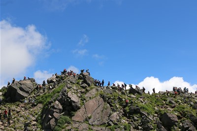 奥白根山神社で安全祈願して奥白根山頂上を振り返ると人が溢れていた。