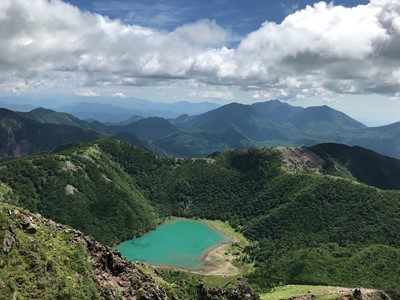9時40分頃奥白根山頂上に着き燧ケ岳、五色沼、日光連山、中禅寺湖などを眺めながら長めの休憩をとる。休憩していると丸沼ロープウェイからの登山客が徐々に増えてきたので五色沼の避難小屋に向けて出発する。