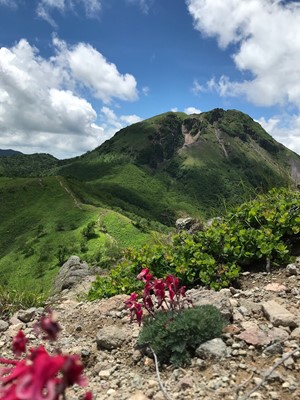 五色沼の避難小屋で小休止してから前白根山へ向かう。稜線に出ると中禅寺湖等の眺めが良く適度に風があり思ったより暑さを感じず気持ち良かった。前白根山頂上付近でコマクサが点在して咲いてたので地面に這いつくばりながら写真を撮る。
