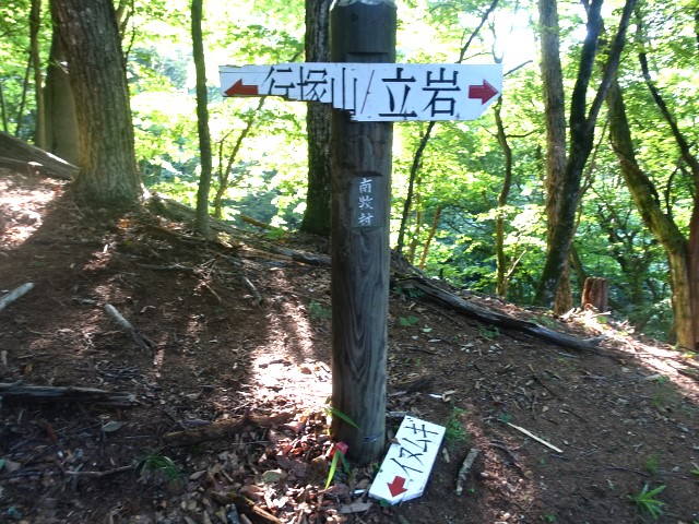 ユックリした後下山路は星尾峠方面への周回路を選ぶ。星尾峠からは ややマイナーな感じのイヌムキ不動へのルートだ。それなりに踏み跡もあり、マーキングも多い。イモリの滝分岐まで来た。予定通りイヌムキ不動へのコースを選ぶ、沢を渡る付近でマーキングを見失いワンデリングする。いつも思うのだが、マーキングも多すぎるところもあるが、肝心なところに少なく、ルートから外れる事が多い、ケモノ道を使い20分ほどロスタイムで何とかルートに復帰、やがてイヌムキ不動の分岐に到着です。