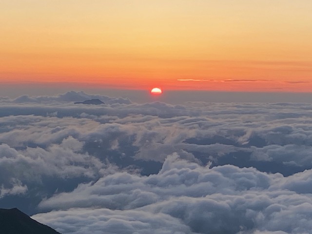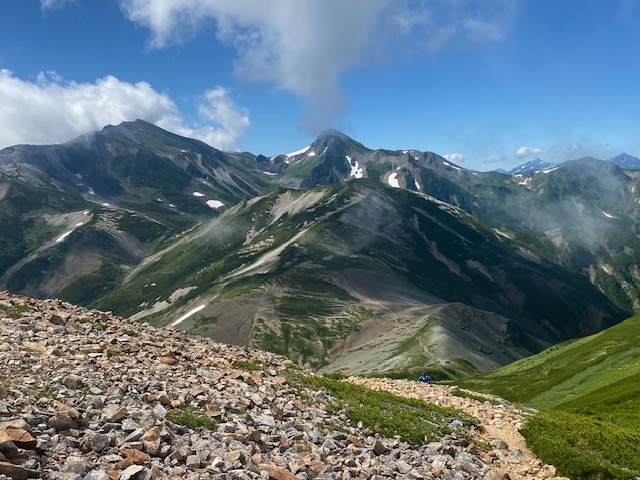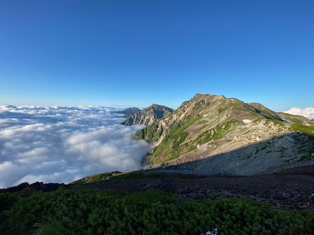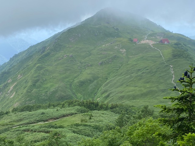 <詳細報告>栂池スキー場には4時45分頃到着。5時に予約していたタクシーで蓮華温泉に向かう。くねくねの細い道で、自分で行こうと思うとゾッとするくらいすれ違いも厳しい。1時間ほどで到着したが、駐車場は金曜日にもかかわらずほぼ満車。トイレを済ませて、登山開始。最初は木の根や大きな石の足が滑りやすい下りがしばらく続いた。昨年と違って乾いていたので、ヒヤヒヤはしなかった。兵馬の平に出たが、花はあまりなかった。何回か橋があり沢を渡って、樹林をしばらくゆくと、見晴らしの良い花園三角点に出た。晴れていて暑く、熱中症気味のメンバーもいたので、水場までゆき、しばらく休憩。お花畑が広がっており、とても気持ちの良いところ。ここまでも木道だったが、しばらく木道が続いて、沢も横に流れており、気分の良いのぼりが続くので、疲れをあまり感じることなく高度を上げた。しかしガスが上がってきてしまい、朝日岳のピークはガスで展望がなかった。ここでお昼休憩とし、朝日小屋を目指すと、途中からガスが切れて、赤い三角屋根が見えてきて、懐かしい感じがした。小屋前のテーブルを確保して、名物女将に受付を済ませて、ビール、酎ハイを買ってまず乾杯。昨年もそうであったが、ここは楽園のように心地よい。酒も進む。部屋は個室で大きく、高さもあるので居心地が良い。廊下もよく手入れされており、トイレはなんとウォシュレット付き。しばらく談笑したのち、拡声器から押し寿司と混ぜご飯の販売を開始しますとアナウンスあり、的鯛、ます、クルマなどの押し寿司とそぼろ、シラスの混ぜご飯を明日のためにゲット。夕食は昨年感動した牛肉の陶板焼きとおでんがなくなり、ラーメンとふろふき大根に変更されており興醒めした。ホタルイカの沖漬けは相変わらず美味かった。部屋に戻ったら速攻で眠りに落ちた。翌日は5時に出発し、水平道で朝日岳はショートカットし、しばらく樹林を越えて行くと、ようやく雪倉岳の取り付きに到着。メンバーの1人がサングラスを紛失した。九十九折りの登りを行くと、後ろには富山湾、能登半島がガーンと見えて、素晴らしい、雪倉岳の山頂に着くと、目の前には白馬岳、旭岳が迫ってきて、昨年ガスの中見えなかった素晴らしい縦走路が見えて俄然やる気が出た。この日に宿泊予定の白馬頂上宿舎に泊まったというパーティーと山頂で話したところ、豚の角煮の食べ放題ありと聞いて、頭は角煮だらけとなった。ソロハイカーに抜かれて、どこからきたんですかと聞いたらなんと昨日終電で東京から親不知に着いて、そこからきたという。このまま白馬岳登頂して大雪渓下り、白馬駅から帰るのだと。日帰りで栂海新道を登りてやるとは、驚いた。三国境まで頑張って登っていくが、景色が素晴らしいのと、いつものテント泊装備ではないので身軽なせいか、疲れはあまり感じない。三国境で少し休んで、白馬岳ピークを目指す。ガスで景色ないが、昨年の雨を思えば天国と地獄の違いだ。偽ピークを二つくらい越えて、到着。人は多い。わんさかいる。明日のご来光を期待して、そそくさと頂上宿舎を目指した。白馬山荘は、人でごった返しており、スカイプラザはなんと行列になっていた。かなり下って頂上宿舎に着いて受付を済ませて、生ビールにありついたら、雨がざーっと降ってきて、ずぶ濡れの登山者がしかもテント受付をしていた。この雨の中テント張らねばならないのは辛いよなと同情した。談話室に入ると数人おり、そのうちの京都から来たという40代くらいの女性がすごかった。先日我々が苦しめられた餓鬼岳から燕岳の間の東沢乗越からの登りは辛いですよねなんて知っており、この間は塩見岳から蝙蝠岳に行ってましたとしらっと言って、雲龍渓谷にも行きましたなんて栃木の山にもきており、話は盛り上がった。夕食はバイキングであったが、角煮ではなくて、脂っこいプルコギ肉であった。私はこれの他ハムチーズのフリット、鳥のテバの照り焼き、高野豆腐など、タンパク質のみとり、大量だったのか、メンバーは呆れ果てていた。さらにおかわりをとったが、途中気持ち悪くなり結局残すことになり、いつも期待を外さないよね、先生はといたぶられて終わった。夜はメンバーのほとんどが暑くて眠れなかった。朝日小屋とはえらい違いであった。翌日はご来光見るために3時前に起床し、4時過ぎには登り始め、4時45分が予定時間であったが、30分近く早く到着。雲海がすごかった。寒い中待っていたら、ひょんなところからご来光が出てきて、あっという間に明るくなった。たくさんの人がご来光のためにピークに密集しており、さらに大人数のクラブツーリズムの団体もいて、小蓮華岳に着くとその団体が朝ごはんを食べており、我々は少し進んだ広めのところでお弁当。素晴らしいおかずおご飯の二段重ねで満足した。ここからはまたガスの中となり、白馬大池も昨年同様見えないのかなあと思い