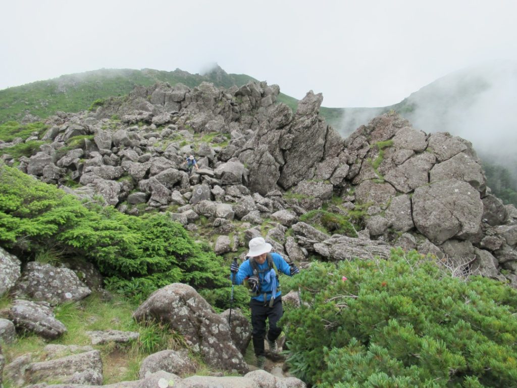 (西尾根)-9:15西天狗岳9:35-9:50東天狗岳10;15-10:50天狗ノ奥庭 -11:50黒百合ヒュッテ