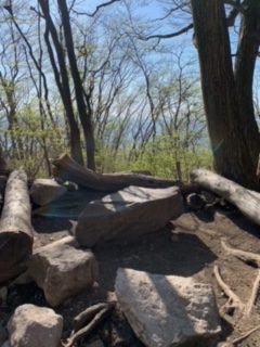 山頂直下でひと登りしたら頂上に出た。山頂は狭いが360度の展望で素晴らしい眺めだった。標高の低いところは風が吹いていたが、山頂は風の通り道ではないのか風に吹かれることなく暖かかった。珍しく朝食を摂っていなかったので、暖かな日差しの中、カップラーメンを食べた。最高に美味しかった。山頂に温度計が設置されていたので確認したら、18℃だった。天気が良く暖かかったので、頂上で50分程のんびりと大休止した。