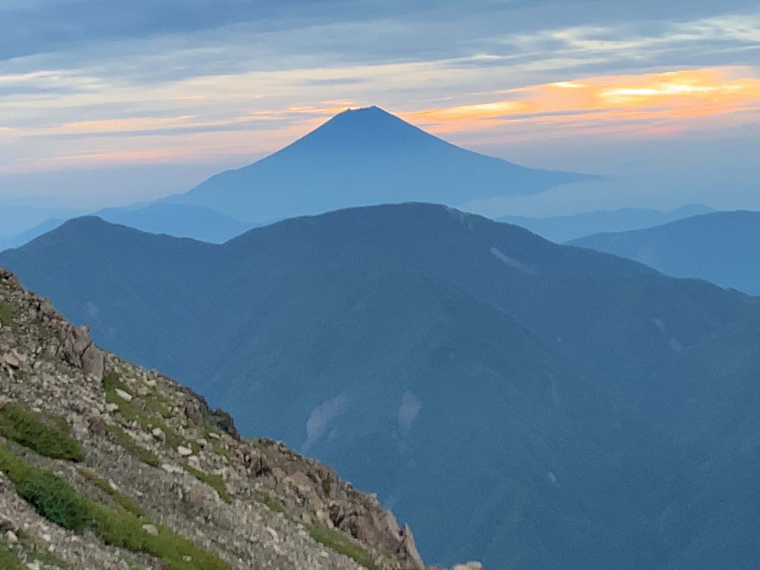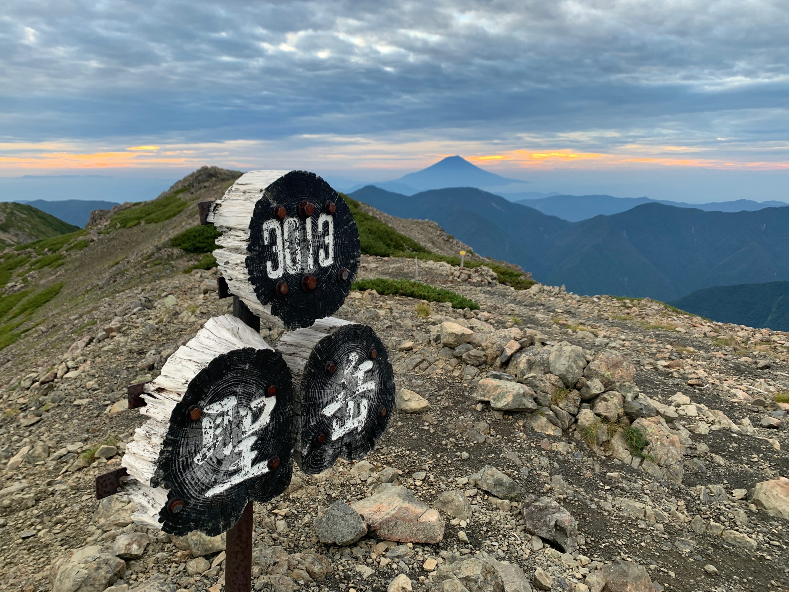 2023.08.26-28 聖岳 山行報告2023 2023.08.29 2023.08.28 <メンバー>きたはら<概要>無事下山しました。3000メートルですが暑かったです。頂上から光岳や塩見岳、富士山が見事でした。 26日:椹島ロッジ泊27日:聖岳登山口ー聖岳ー聖平小屋(テント泊)28日:聖平小屋ー椹島ー畑薙 午前5時15分聖山頂朝一番で誰もいない聖山頂滝見台より聖岳登山口