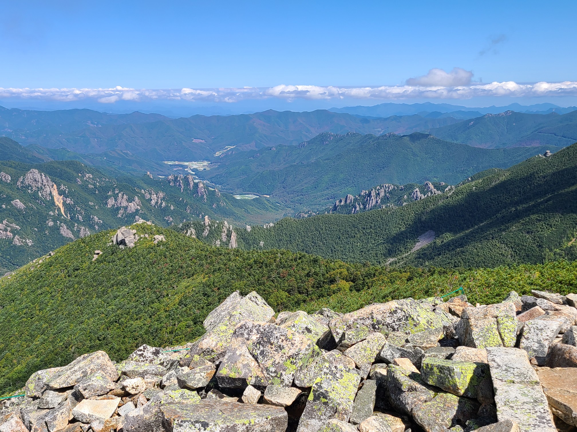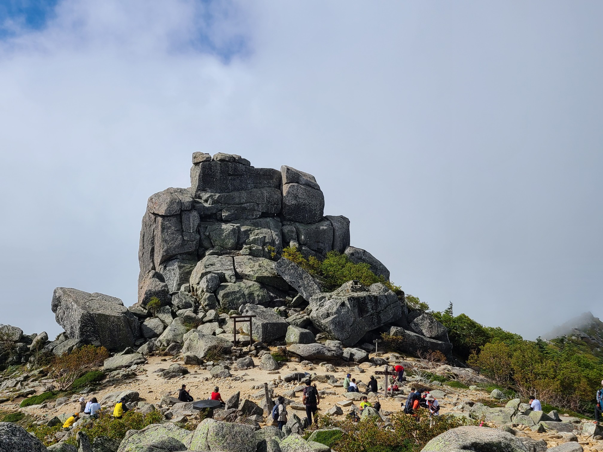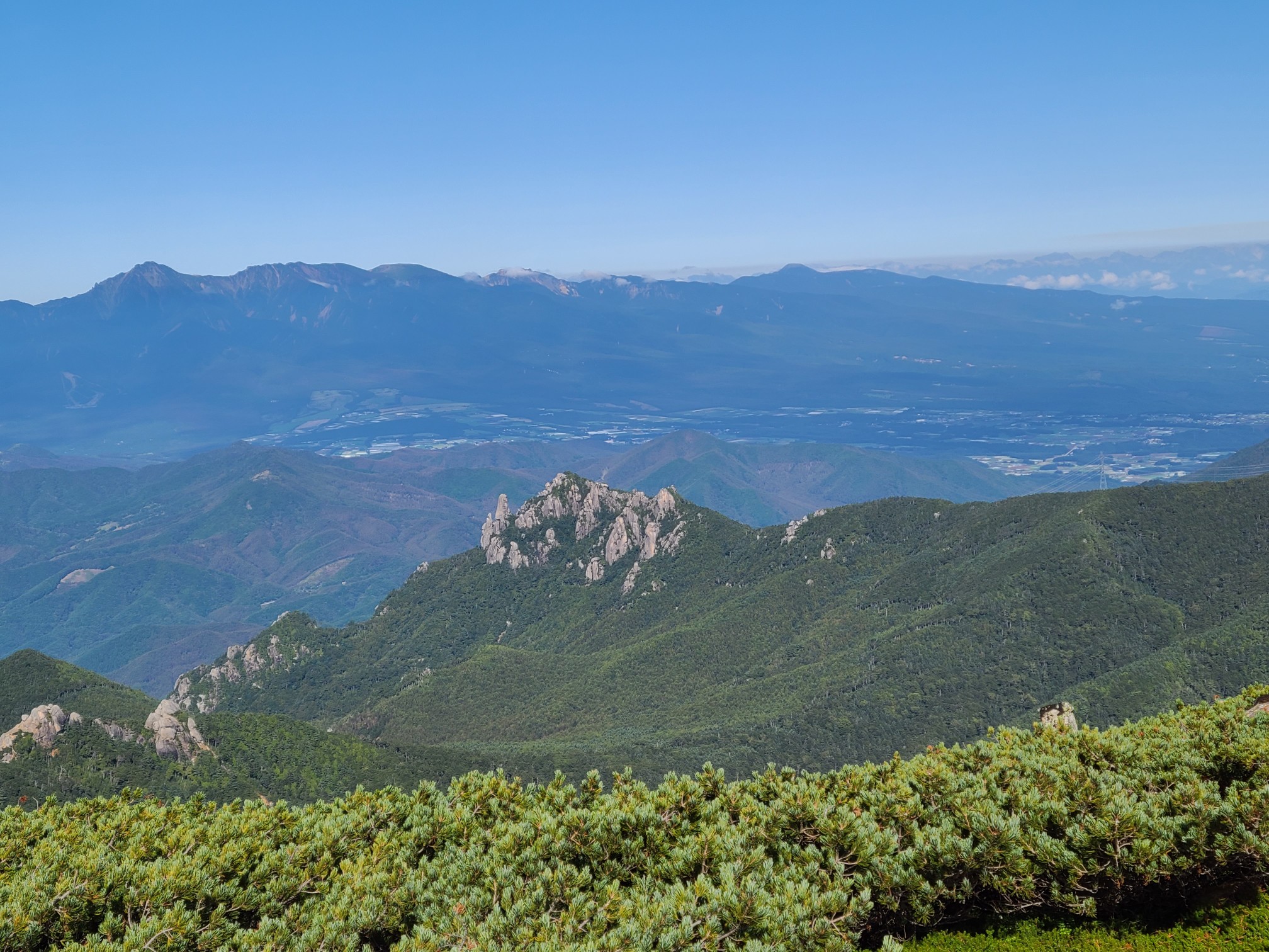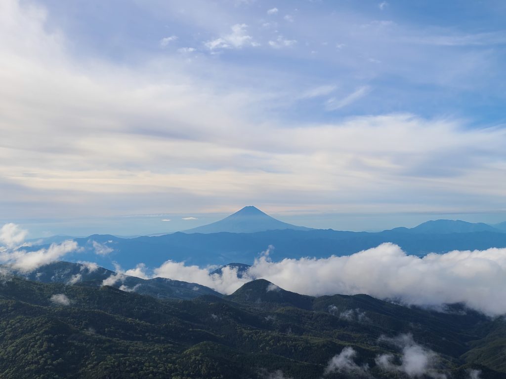 前夜18時田沼集合。急ぎではないので下道を使い雁坂道から山梨に入りました。途中から雨が降りだし大弛への細い林道は土砂降りでここが一番大変でした。駐車場には10台ほど停まっていましたがまだまだ空きがありました。大弛峠は標高2350mあるので朝方寒くて目が覚めました。続々と車が入ってきて停められず戻っていきます。前夜泊にして正解でした。朝ごはんを食べて6時半に出発しました。苔に覆われた道に癒されながら急な樹林帯を登っていきます。途中木が途切れたところから裾野を広げた富士山が素敵な姿を見せてくれました。朝日岳、鉄山のアップダウンを繰り返し山頂手前の広場に出ました。ここから八ヶ岳の全容が目の前に西側の岸壁がよく見えました。御嶽山乗鞍岳奥多摩秩父の山々360度。山頂よりも展望が良かったかもしれません。そこから大きな岩を越えて山頂です。時間もたっぷりあるので大休止。さわやかな青空の下で瑞牆山や男山を眺めながら休みました。来た道を戻り、直売所で葡萄を買い、小山山岳会へ復帰のきっかけとなった川浦温泉(500円)で温まり、雁坂峠を越えて帰りました。長い山道、時間はかかりますが渋滞には合わないので雁坂道、私は好きです。