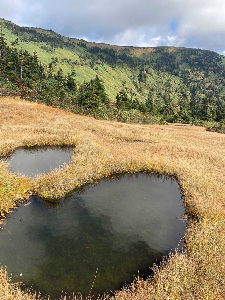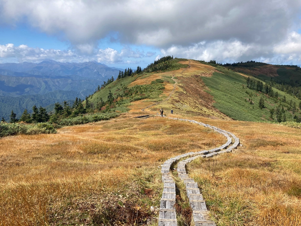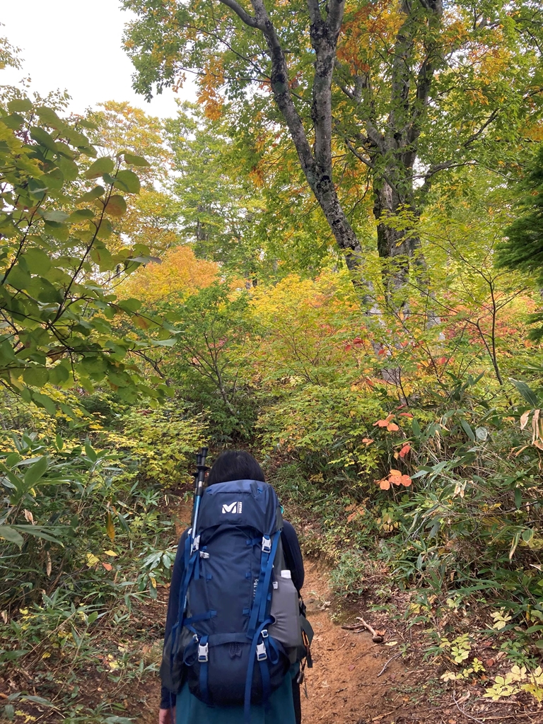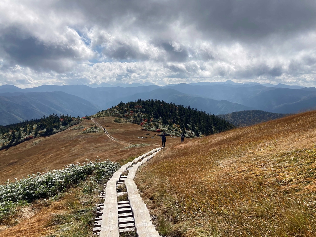 登山口近くの民宿で前泊しました。7時に滝沢登山口の駐車場へ着いたのですが、登山口に一番近い駐車場は満車でした。少し下った駐車場(徒歩10分位)に空きがあったのでそこに駐車することができました。紅葉を期待していたのですが、登山道は一部黄色になっている箇所がある程度でした。山頂付近の駒の小屋あたりの草紅葉は圧巻でした。ここでしか見ることができない景色が広がっていると感じました。駒の小屋の少し前から、木道歩きなのですが、木道も場所によっては壊れている箇所もあり、日陰では苔があり滑りやすい状態。気をつけて歩いていたのですが途中で転倒し右足を痛めてしまいました。痛いながらも歩けるレベルでしたのでそのまま無事に下山することができました。天候にも恵まれ良い山行となりました。
