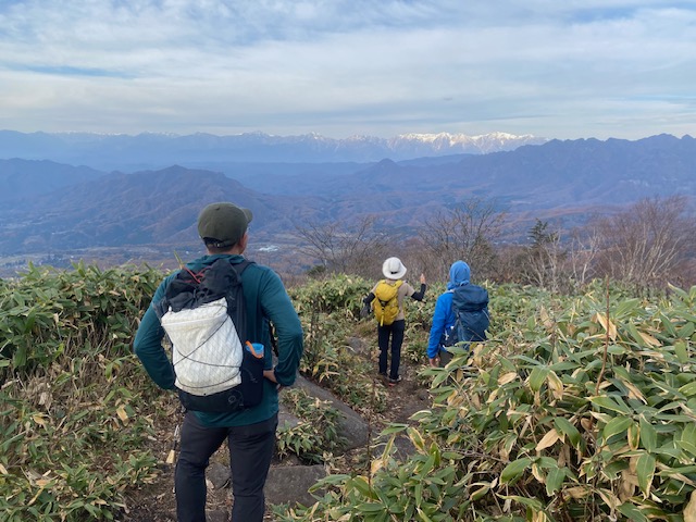 <詳細報告>小山を3時に出発し、大橋林道登山口駐車場へ。すでに駐車場はあと数台で満車の状態。朝から雲ひとつない天気で、登山開始。車道を少しも戻って登山口に到着し、緩やかな登りやすい広い登山道で、まず種池に到着。そこからさらに少し上に古池があり、黒姫山が池の後ろに見えて素晴らしい景色であった。傾斜も緩やかに新道分岐まで道を進んでゆくと、くすんでいるが色づいた木々があり、そこからしらたま平まではやや急な登りではあったが、全く危険箇所のない歩きやすい道であった。登山客も多く、大橋林道側からも合流してきた。しらたま平では高妻山、戸隠山、飯綱山などの眺望が素晴らしく、バックには冠雪した北アルプスが見えた。そこから黒姫山までは緩い登りで大池分岐からから急登となり山頂到着。野尻湖の眺望が良かった。山頂にはたくさんのハイカーが休んでいた。メンバーとの楽しい話をしながら、Cafe Shozoの風のブレンドの豆を引いて、コーヒーを淹れ、カップラーメンを食べた。今回は日清の坦々麺であったが、思ったよりも味が薄かった。僕の舌がおかしくなっていたのか。1時間ほど休憩して、下山開始。復路は大橋林道を戻った。そのまま神のお告げ温泉に行く途中、戸隠の街中を通るのだが観光客多く、道が渋滞していた。温泉はアルカリ性のお湯であったが、ややカルキ臭い匂いがした。客が少なく、始めは私と男性メンバーの二人だけ貸切状態であった。露天風呂はなかった。蕎麦屋を併設しており、翌日昼食に蕎麦を食べることになる。温泉から出て、まず越後屋という酒屋にいき、店の人が勧めた戸隠山のひやおろしと、もう一種類名前を忘れたが2本四合瓶を買って、戸隠キャンプ場受付にゆくと「今年は暑いのでカメムシが大発生しています。」と言われて、えーっと思いながら受付を済ませログキャビンへ。電源もあり、懸念されたカメムシもいず、早速夕食の準備に取り掛かった。メニューはすき焼きで、日本酒を飲みながら恋バナを聞いていい加減出来上がって終了。思ったよりも暑いため、シュラフを布団がわりにして寝た。5時に起床の予定であったが、4時頃にはゴソゴソし始め、すき焼きの残りにうどんを投入し、うまいうまいと言って食べて、6時前に飯縄山に向けて出発した。スキー場の駐車場にゆくと我々が一番のりだった。魚影が見える小さな沢の脇をしばらく進んで、萱ノ宮の鳥居をくぐると、そこからやや急登となり、後ろを振り返ると戸隠山がガーンと見えてその後ろには北アルプスが黒姫山よりもくっきりとあり、テンションが上がった。飯縄神社をこえて飯縄山ピークへ到着。北アルプスを背にした戸隠山のギザギザ感が半端ない。来年はここと高妻山をセットでまた戸隠に泊まろうと話が盛り上がった。ピークでは男性メンバー手作りのケーキとコーヒーで休憩とした。ケーキは素晴らしい出来栄えで、うまいうまいと言いつつみんなぺろりと平らげた。復路は瑪瑙山経由とした。数年前紅葉の時期に、1本だけ太陽の光が当たった神のような樹木があったなと思い出した。スキー場のゲレンデを牧歌的に降りてゆき、分岐を曲がってしばらく進んだらあっという間に車に到着。神のお告げ温泉が目の前だったので、そこの蕎麦屋で新蕎麦を堪能し、帰路に着いた。帰りにメンバーの一人が前日寄った越後屋でお目当ての日本酒を買おうとしたら、なんと前の日にはかなりあったものが売り切れていた。思った時に買わないと無くなっちゃうよ ということでしょう。帰りの高速道も渋滞はなくスムーズに小山に到着した。