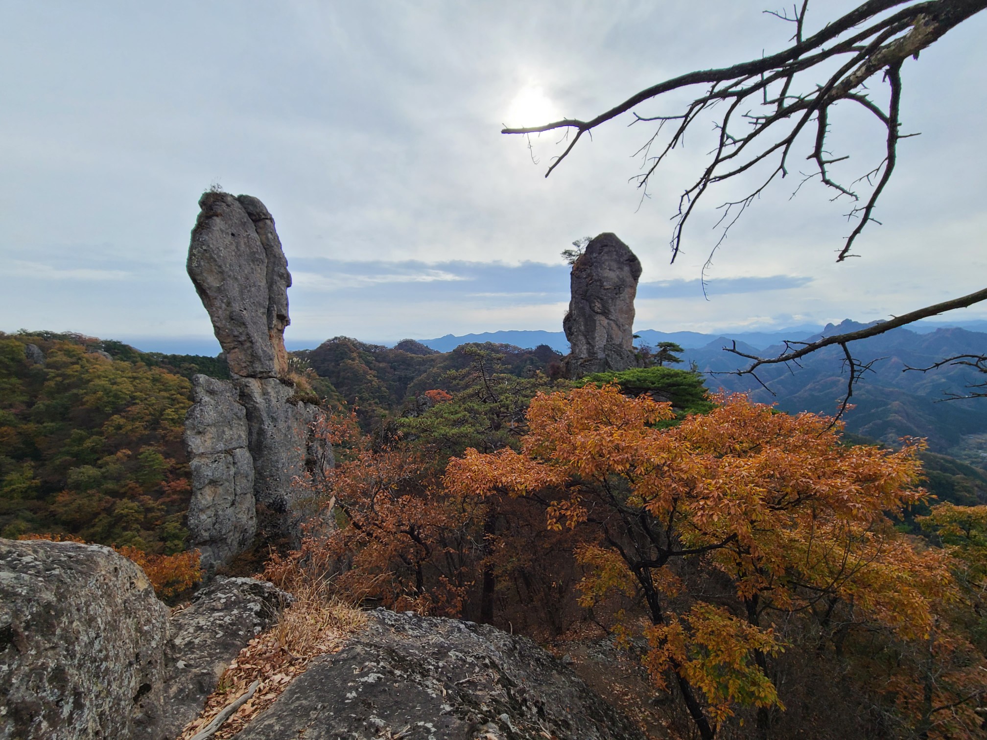 <概要>以前から行ってみたかったジジ岩ババ岩を見に御堂山へ行ってきました。紅葉狩りと温泉療養です。