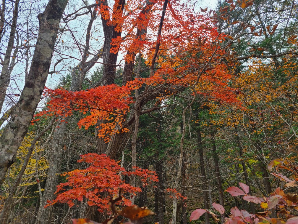 ネパールから帰ってからかなり体調が悪いのだが、紅葉を見ないで終わってしまうのもと思いゆるゆるコースを歩いてきた。駐車場に着いたとたん大雨が降り出し濡れずに済んだ。温泉に入って湯治をしたいとの思いもあった。彩花の湯に浸かりが温泉の蒸気で喉と鼻がかなり楽になった。