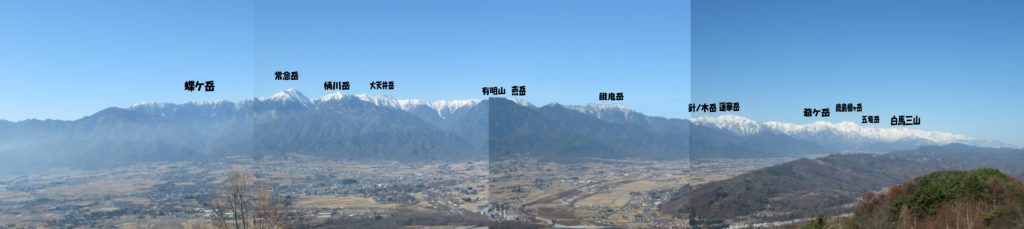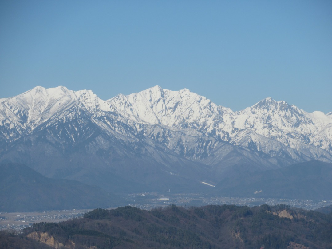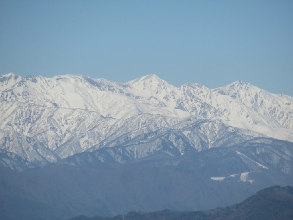 <詳細報告> 今週末は穏やかな晴れ、のんびり冬の陽だまりハイキング、北アルプスを一望出来るという安曇野の低山 光城山・長峰山を訪れました。駐車場は50台は置ける広さで、シーズンの桜の時期には更に広い臨時駐車場もあるとのことでした。冬ですが30台程停まっており近隣の方がトレラン、散策に来られている様です。光城山まではジグを切った歩き易い歩道、山頂の古峯神社に参拝し、暫しアルプスの眺望を楽しんで、長峰山に向かいます。なだらかな遊歩道を小一時間程で山頂に到着、ハンググライダーの離陸場所で木を伐採してあり、展望台もあるので眺めは抜群、ここでもアルプスの大パノラマを眺めながら大休止しました。下山はここから尾根を下り長峰荘脇の登山口経由で、市街地の道路を汗をかきながら40分程歩き駐車場に戻りました。