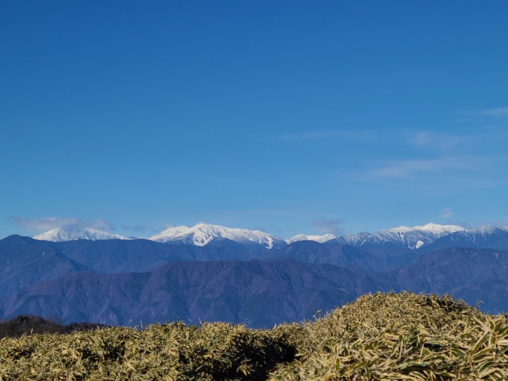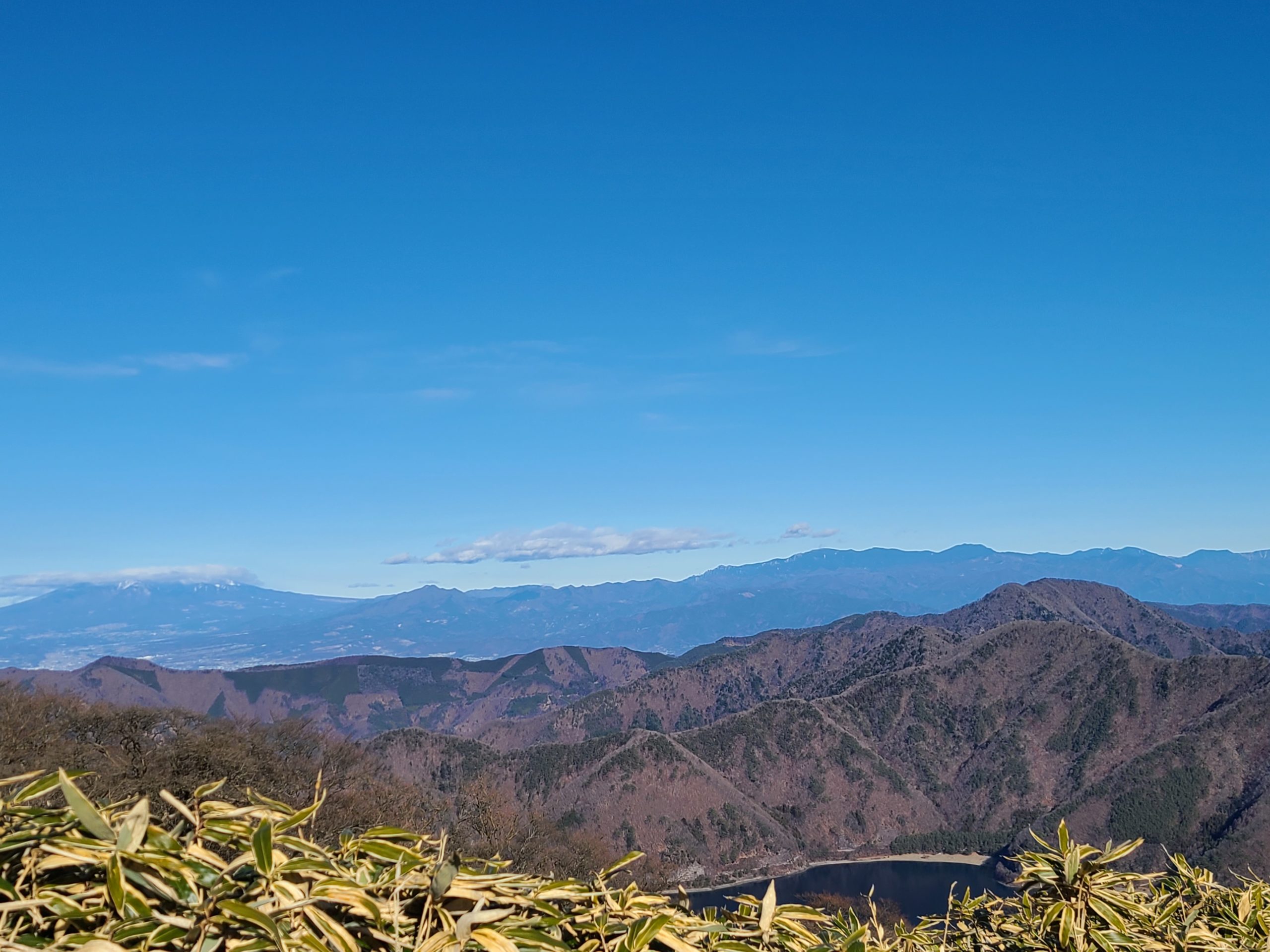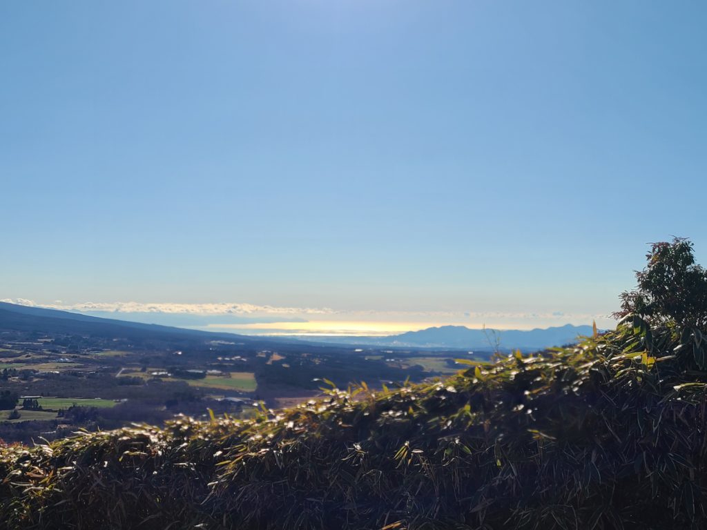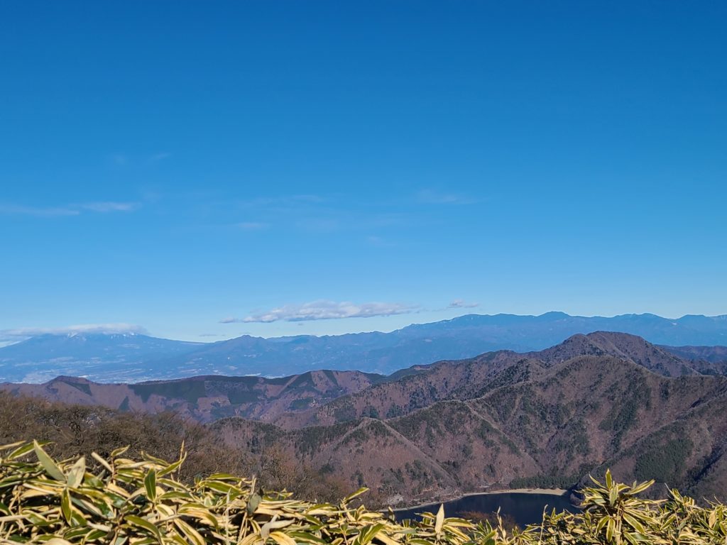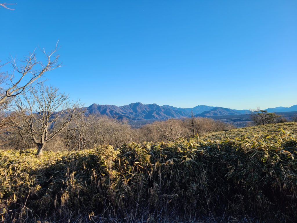 ダイヤモンド富士を見たいというメンバーを案内しました。前回は日の出まで30分ほど寒い思いをしたので今回はツエルトを被って待ちました。ツエルトのありがたさを実感。同じ場所に89歳のおじいさんが待っていました。毎年来ていて来年は辰年なので竜ヶ岳のダイヤモンド富士の写真を年賀状で送ると話していました。先週は赤城山に行ったそうでお元気でした。ほぼほぼ真ん中に上がったダイヤモンド富士の写真を何枚もカメラに収め山頂に向かいました。多くの下山してくる人たちとすれ違い皆さん山頂で日の出を見てきたようです。ほとんど下山されていて山頂はすいていました。ベンチで休憩していると隣に座った3人組のおじさま方の会話、なんかなじみのあるイントネーション。お話しすると宇都宮の方でした。やっぱり…朝4時半に出たのでダイヤモンド富士は見られなかったけど、富士山眺める山行をしているので今日は最高と話していました。周回の予定でしたが下山コースは展望もないので富士山を見ながら降りることにしました。霜が溶けて登山靴が泥んこになりました。下山後ほうとうを食べて温まり渋滞回避で早めに帰路につきました。
