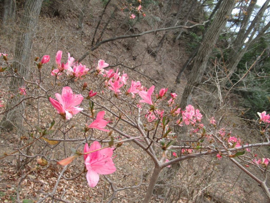 <詳細報告>今年も登り仕舞い、近場の低山、三床山を軽く周回しました。幸い風は殆ど無いのですが、雲が多くポカポカの陽だまりハイキングとはいきません。麓の駐車場には季節の割に多くの車が停められ何事かと思いましたが、氏子の皆さんが鹿嶋神社の新年のしめ縄や門松の準備をされており、下山した時にはすっかり綺麗になっていました。三床山から二床、一床を回りましたが、会ったのは3人だけで静か、鞍部日当たりの良さそうな所に季節外れのピンクのツツジが咲き、ほんのりとした気分です。一床山で休んでいると、下の方から鈴の音が聞こえたかと思うと、群馬から来られたサンタさんが登って来てクリスマスプレゼントに”うまか棒”を頂きました。稜線や山頂からは、白くなった浅間山、日光白根山、富士山、都心方面の霞の中にくっきりスカイツリーが見えました。下山後、一足早い年越し蕎麦を頂き帰宅しました。